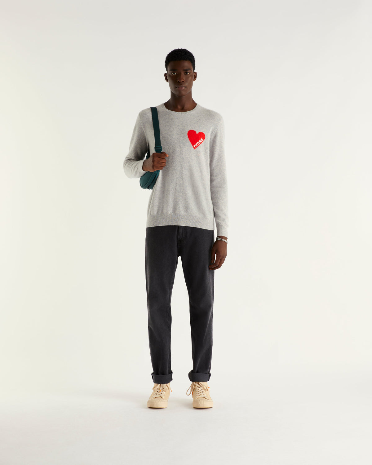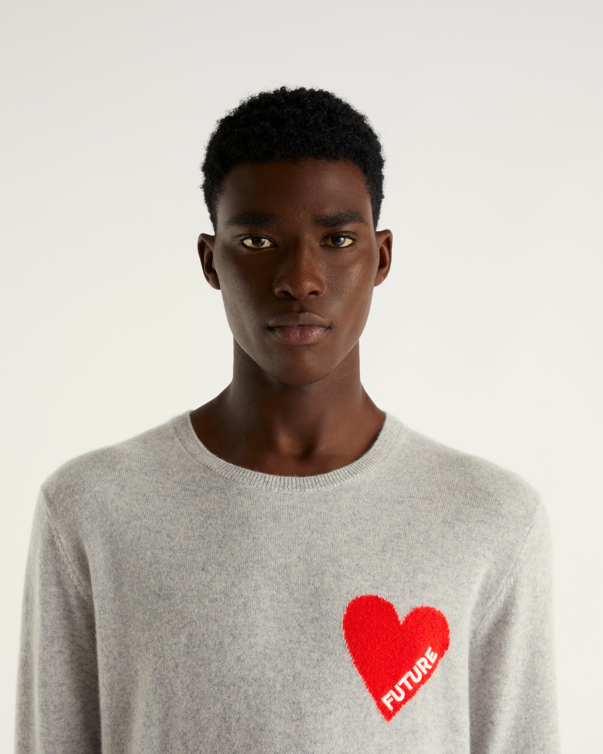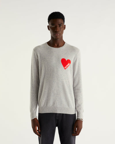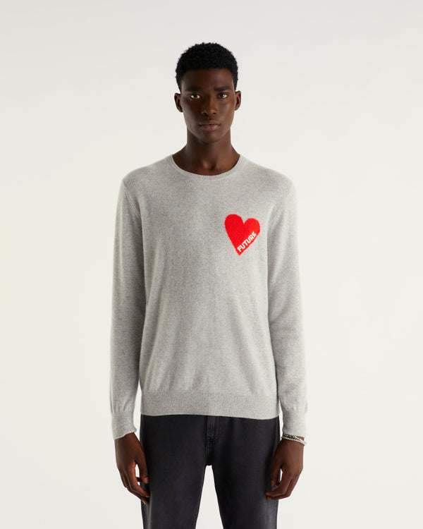 Sweater Col Rond Future Cœur 2 Fils - 100% Cachemire - Gris Chiné Clair
