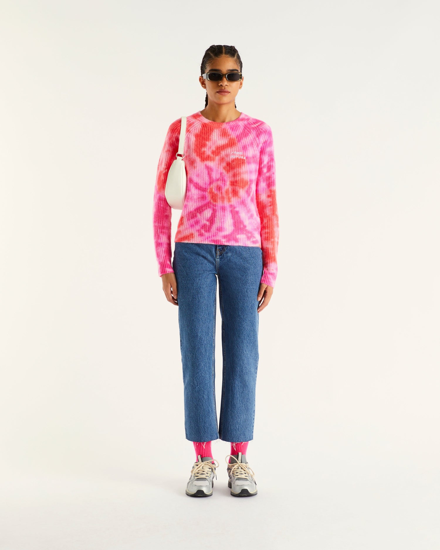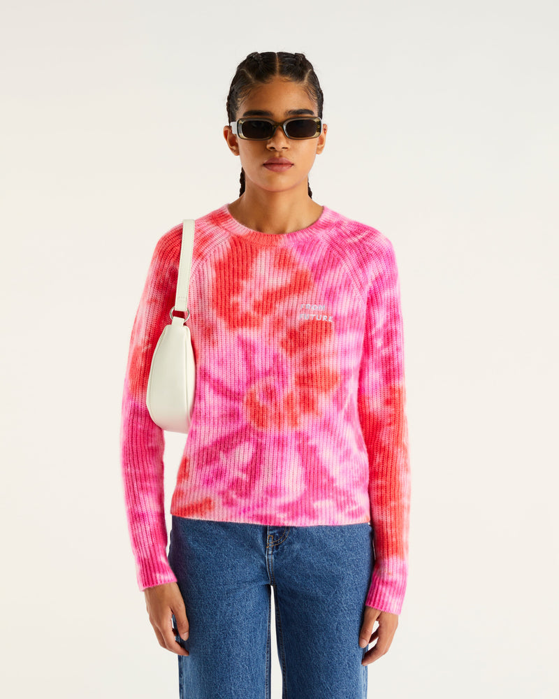 Sweater Col Rond Court Tie & Dye From Future 4 Fils - 100% Cachemire - Tie and Dye Rose