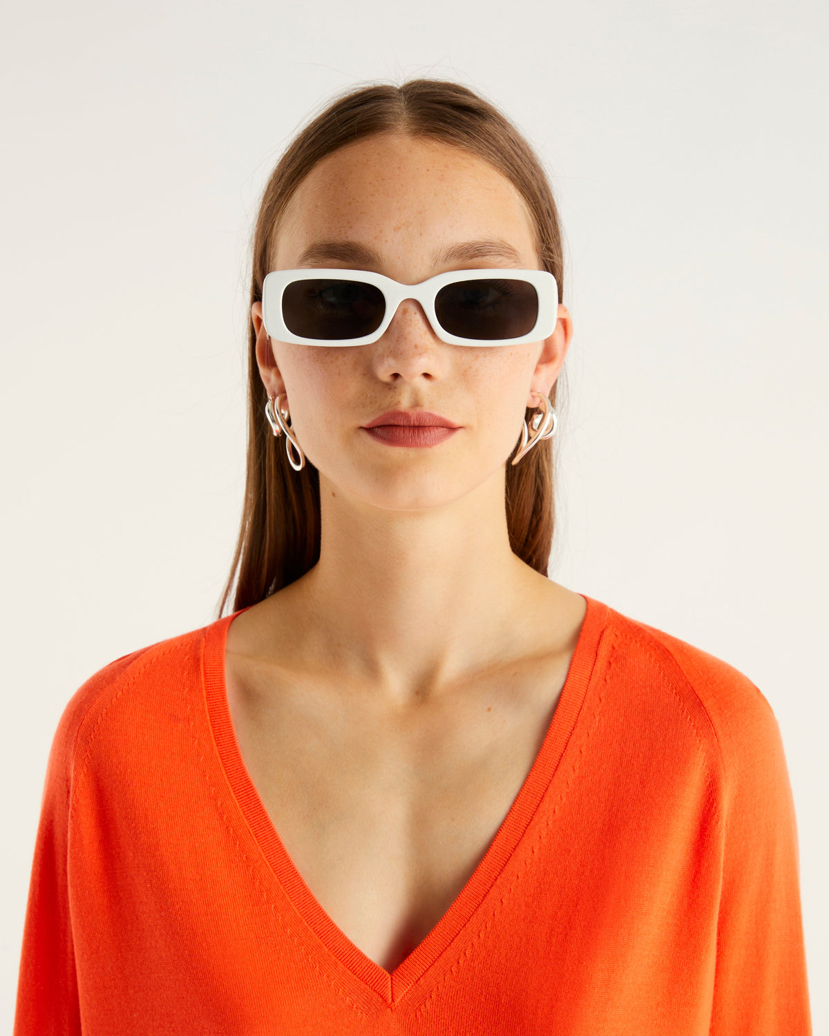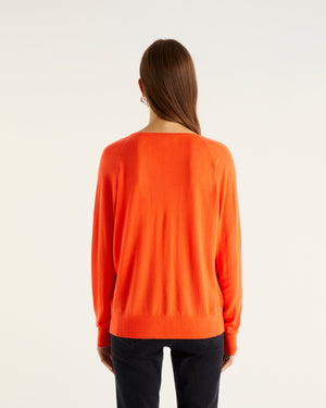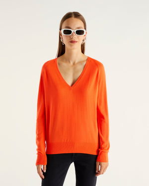 Sweater Col V Oversize Ice Wool - 100% Laine Mérinos - Neon Orange