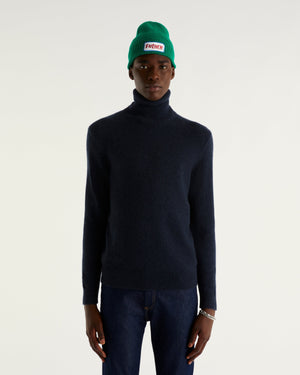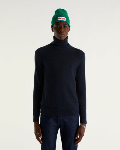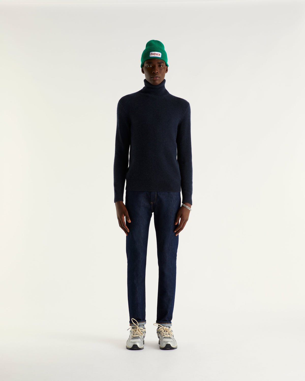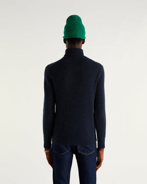 Sweater Col Roulé 4 Fils - 100% Cachemire - Bleu Chiné