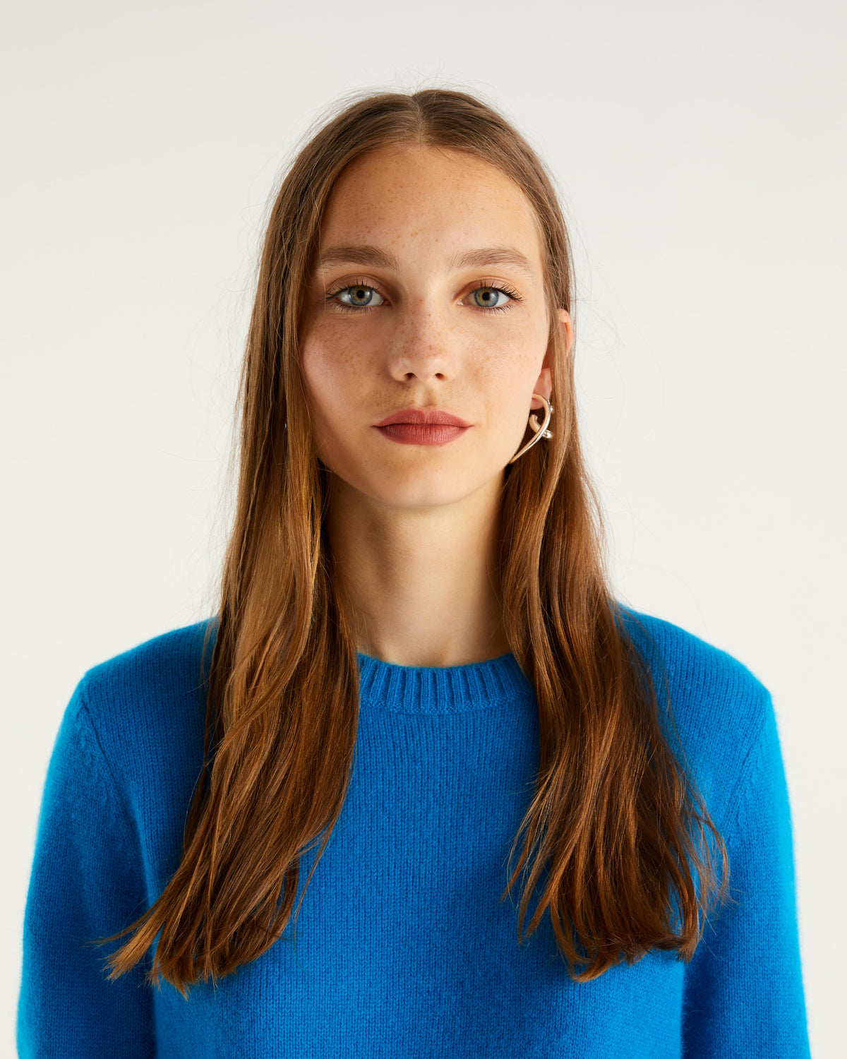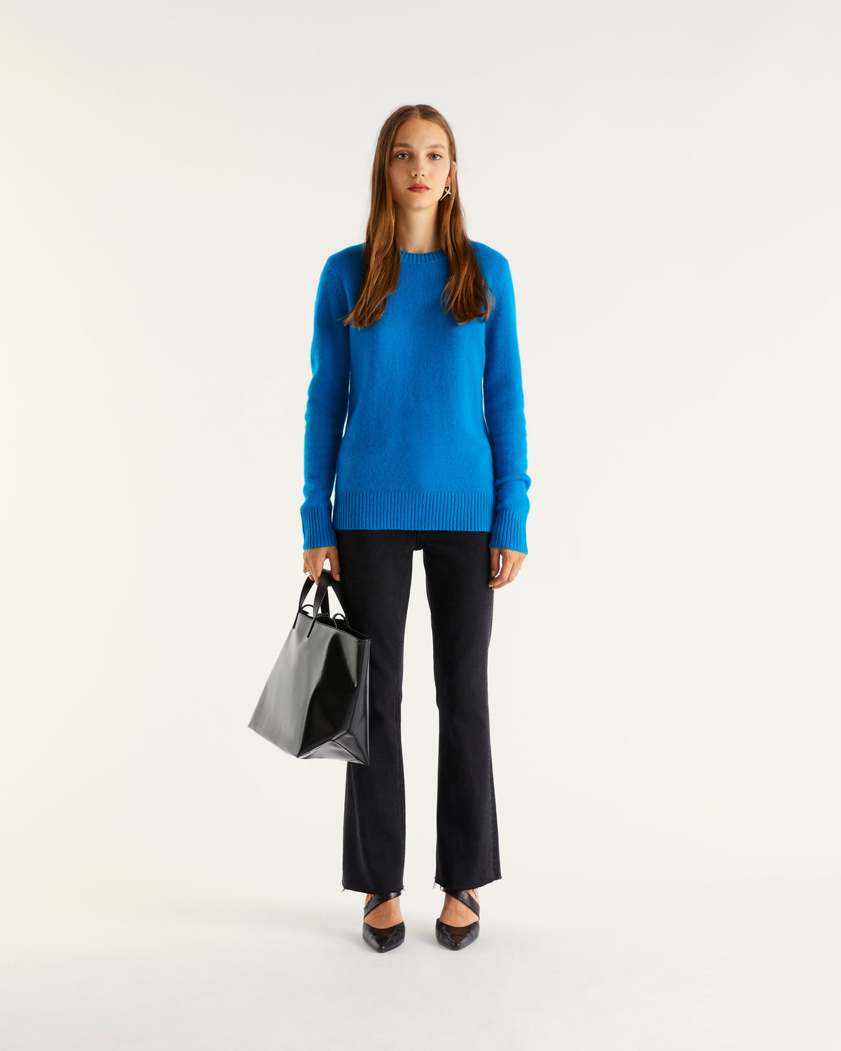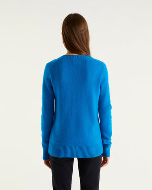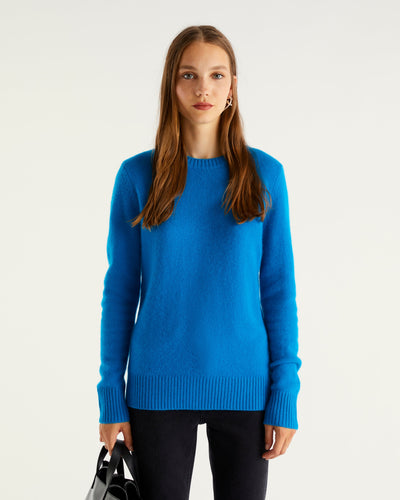 Sweater Col Rond 4 Fils - 100% Cachemire - Power Blue