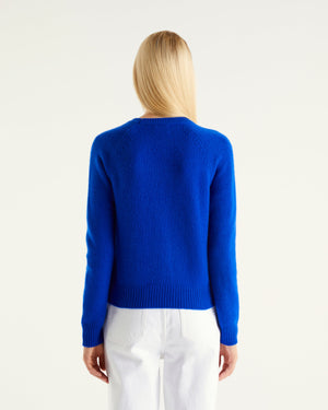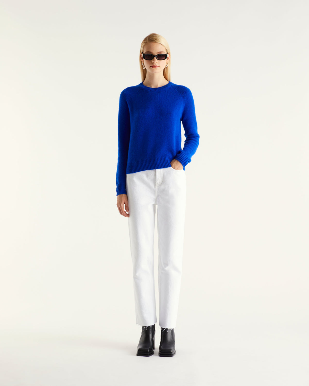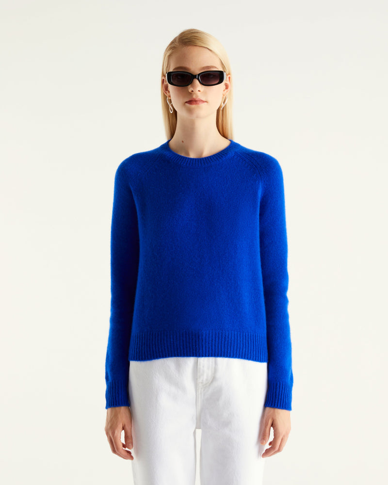 Sweater Col Rond Court 6 Fils - 100% Cachemire - Pop Blue