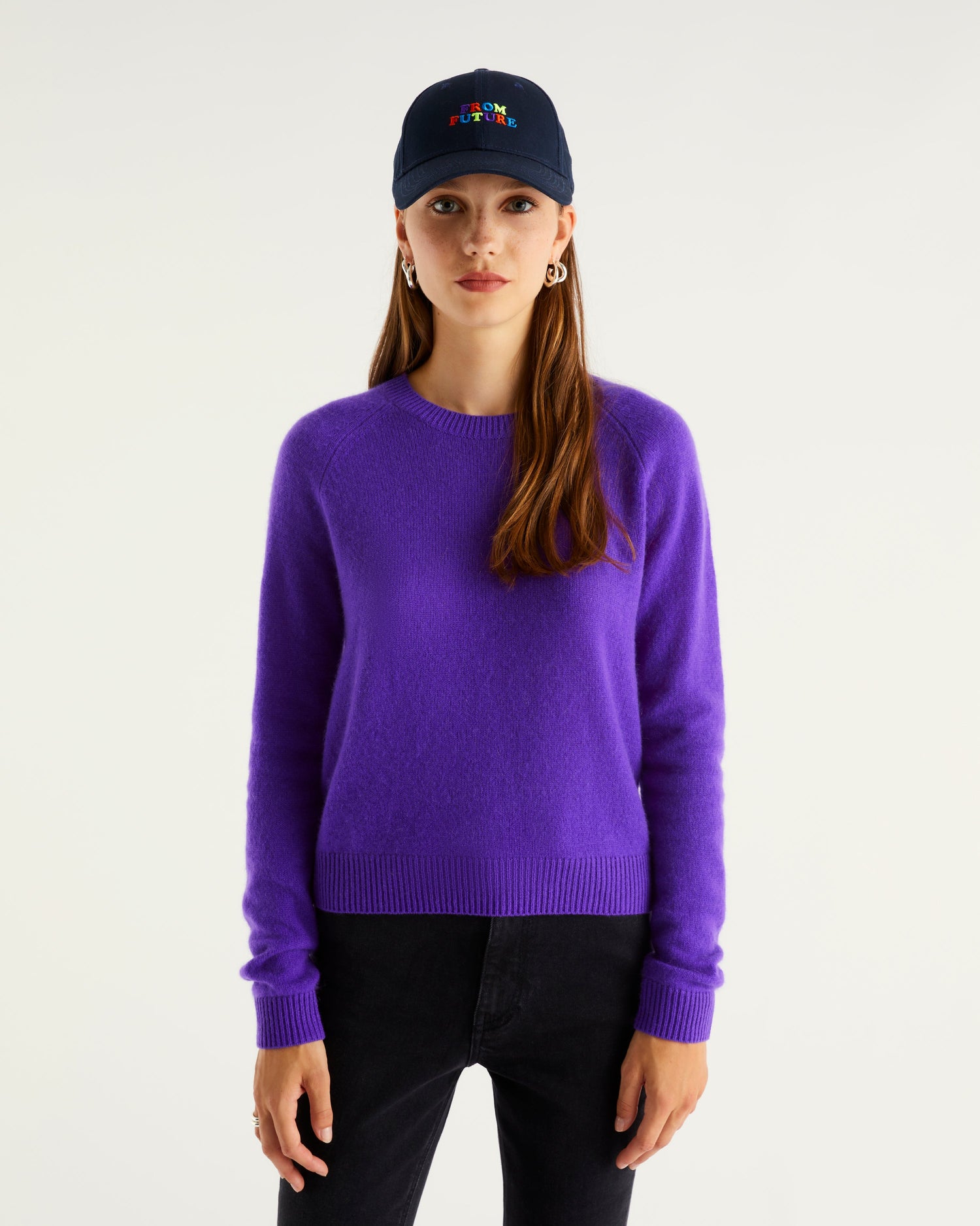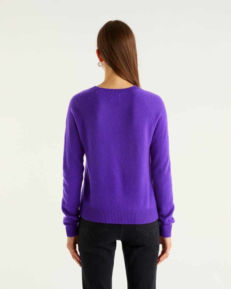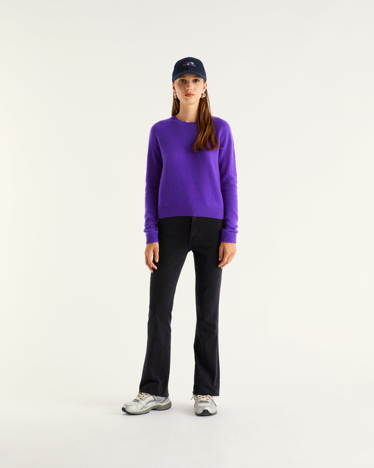 Sweater Col Rond Court Light - 100% Cachemire - Violet Fluo