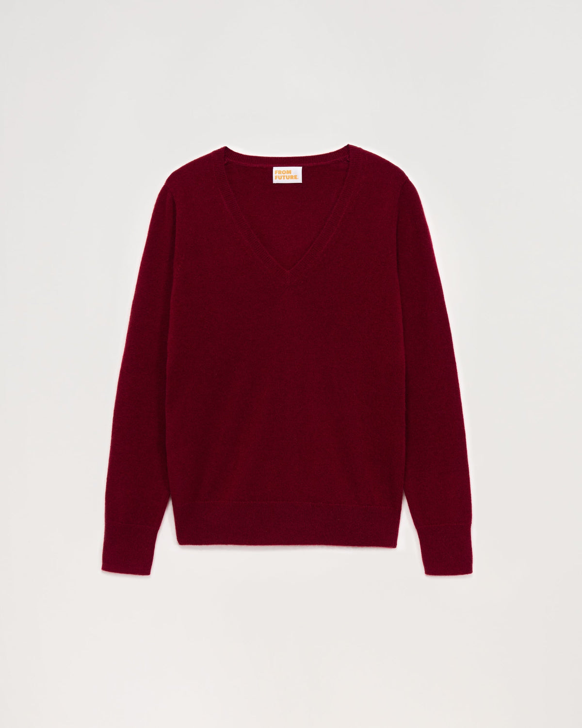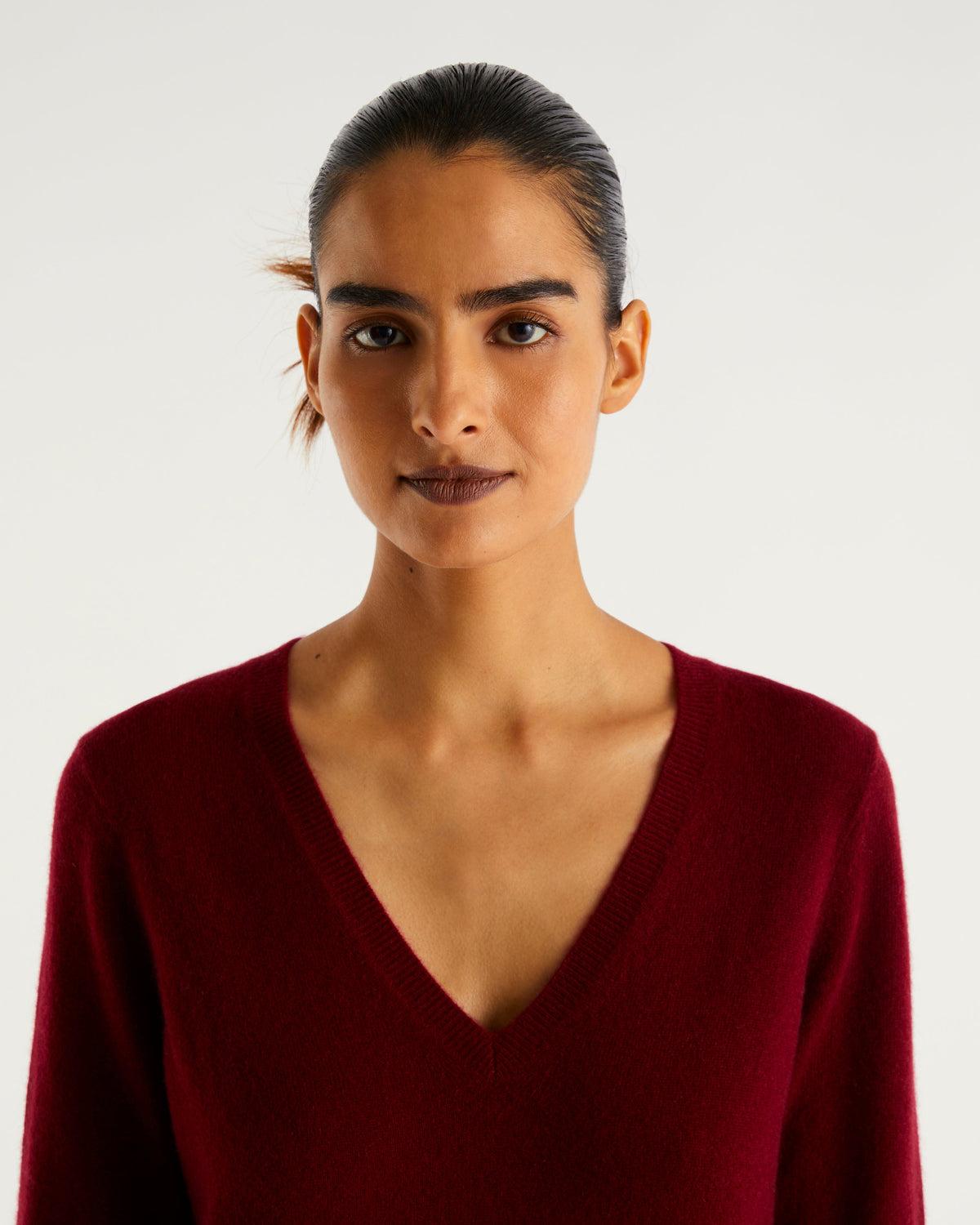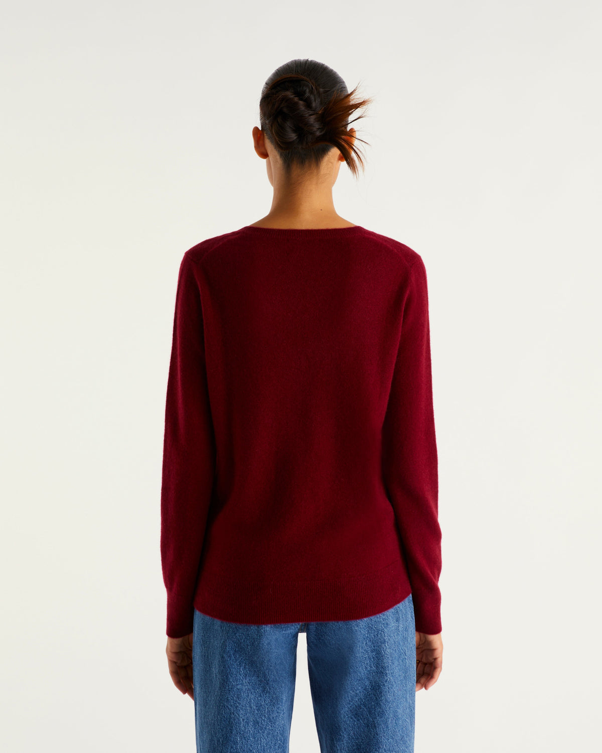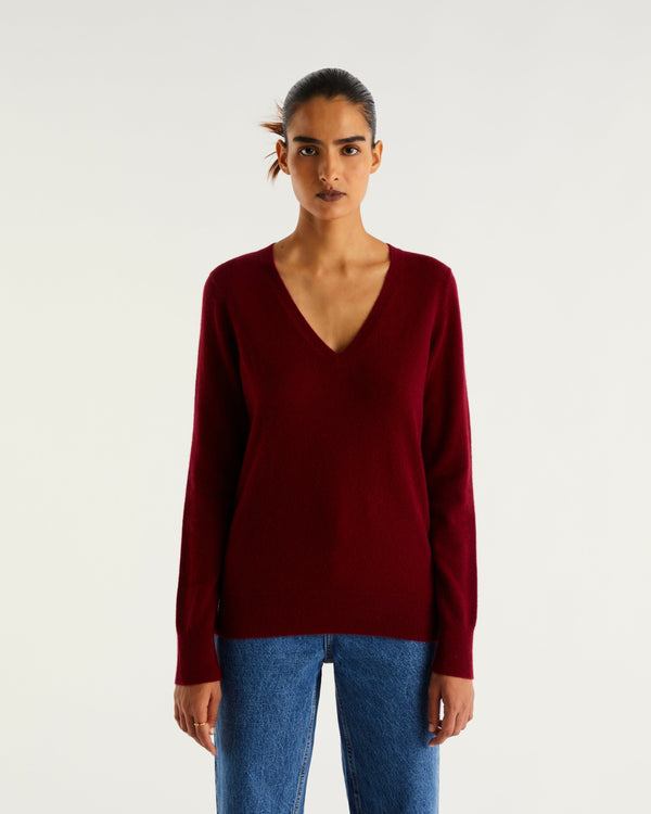 Sweater Col V 2 Fils - 100% Cachemire - Prune