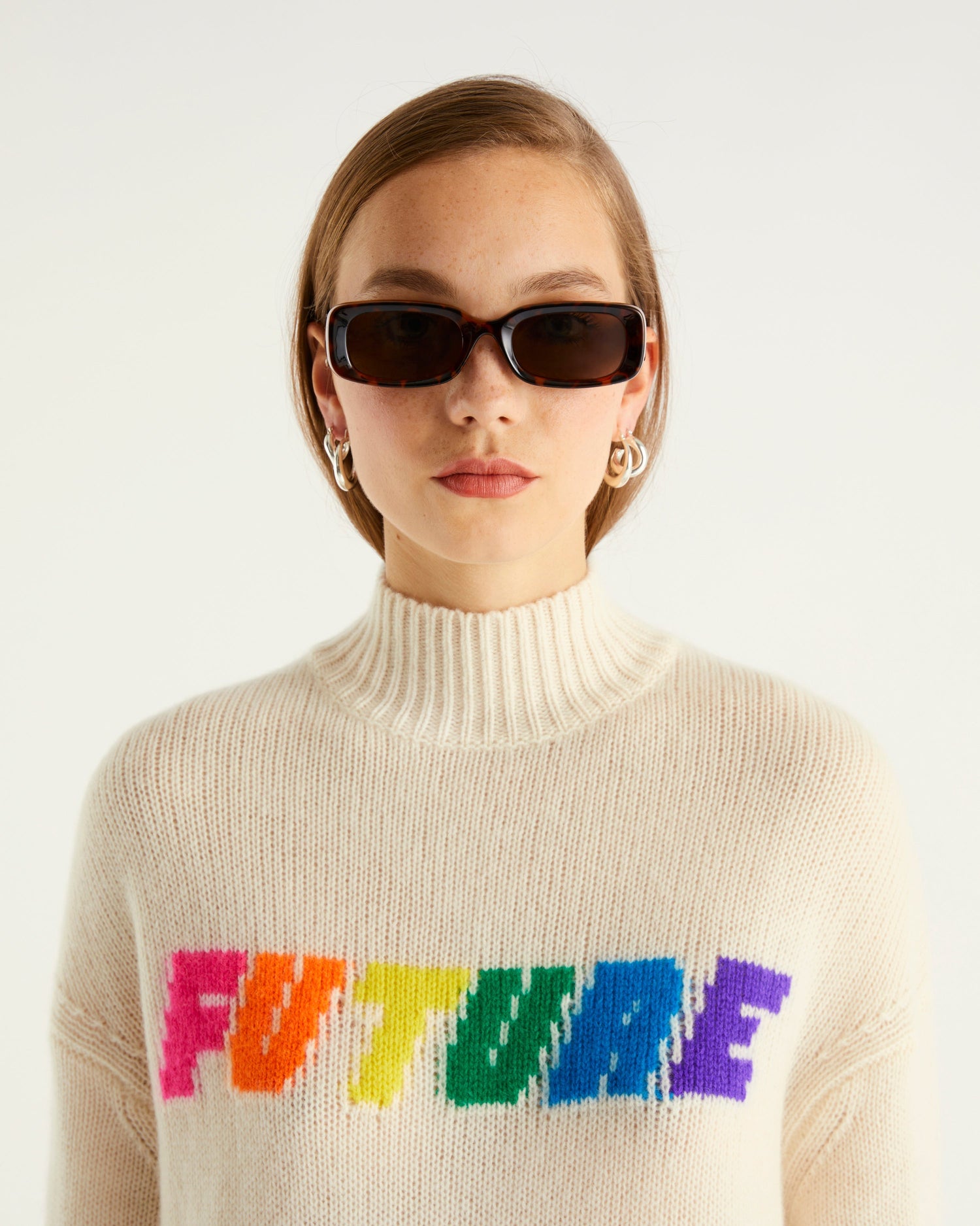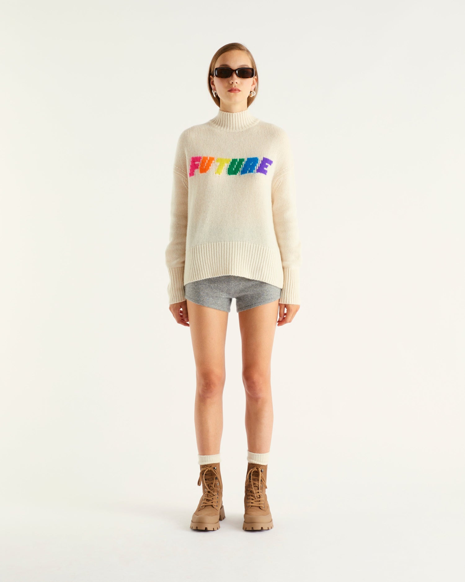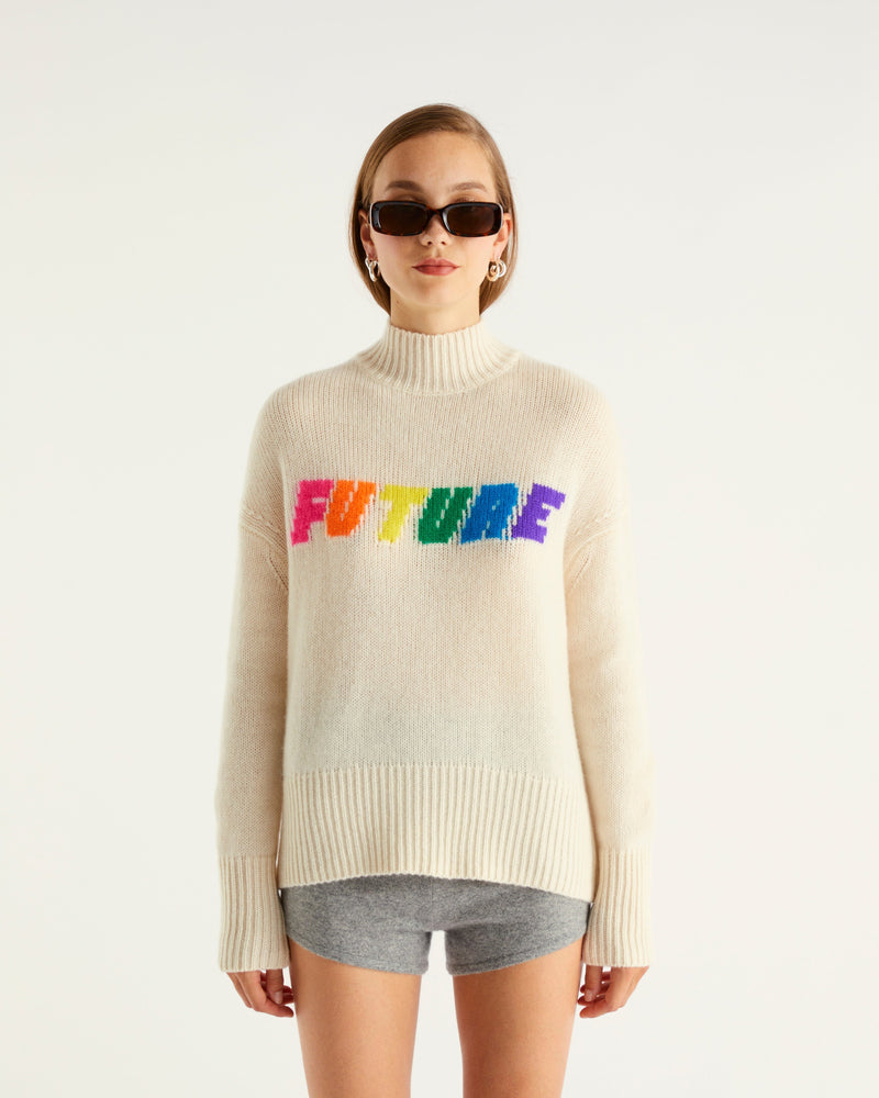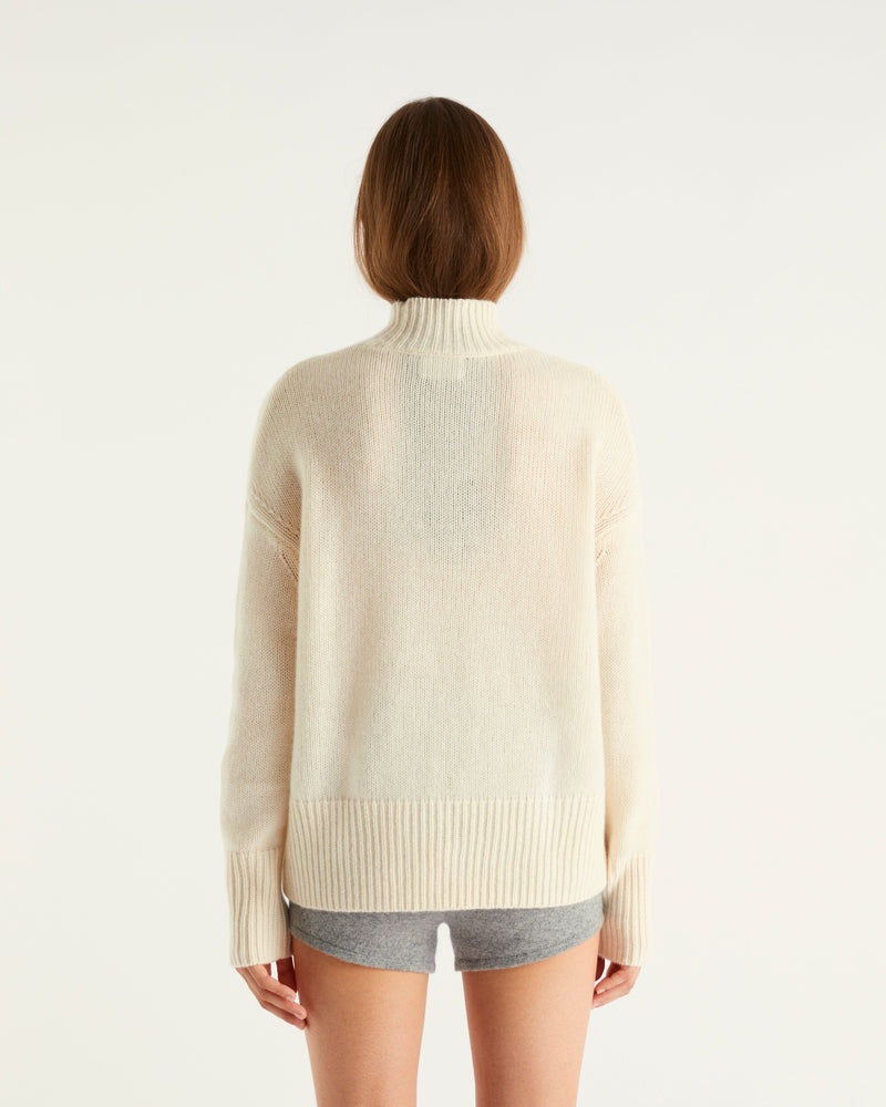 Sweater Col Montant Court Future 6 Fils - 100% Cachemire - Écru