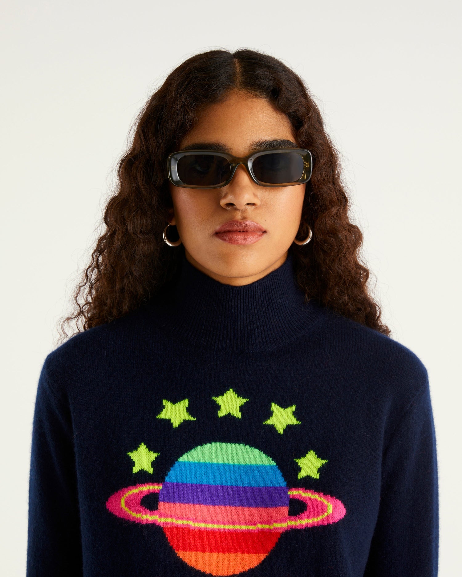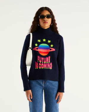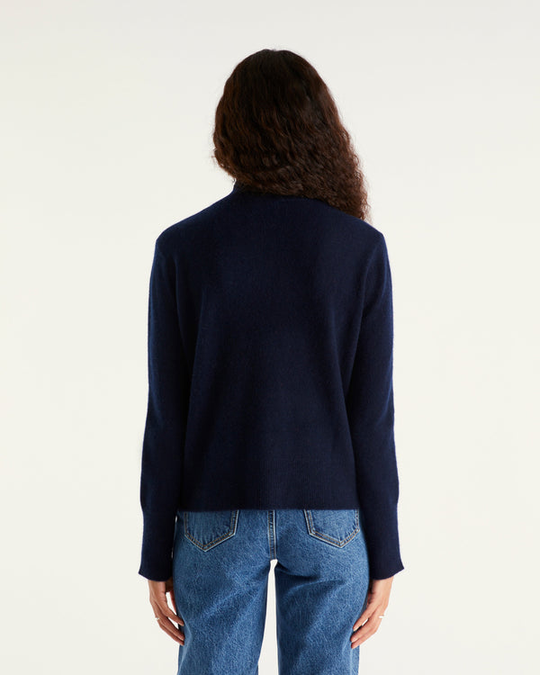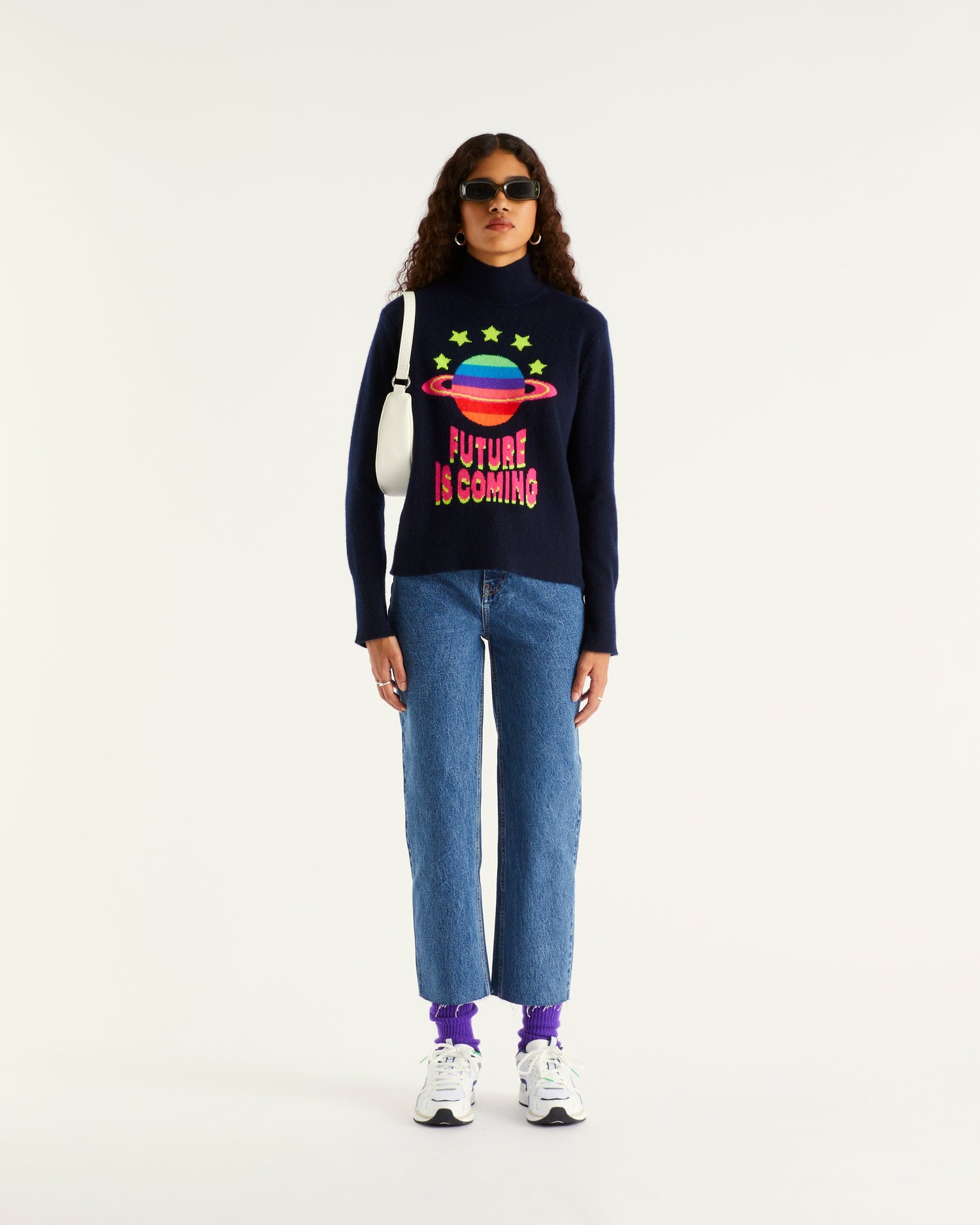 Sweater Col Montant Court Future Is Coming 2 Fils - 100% Cachemire - Navy