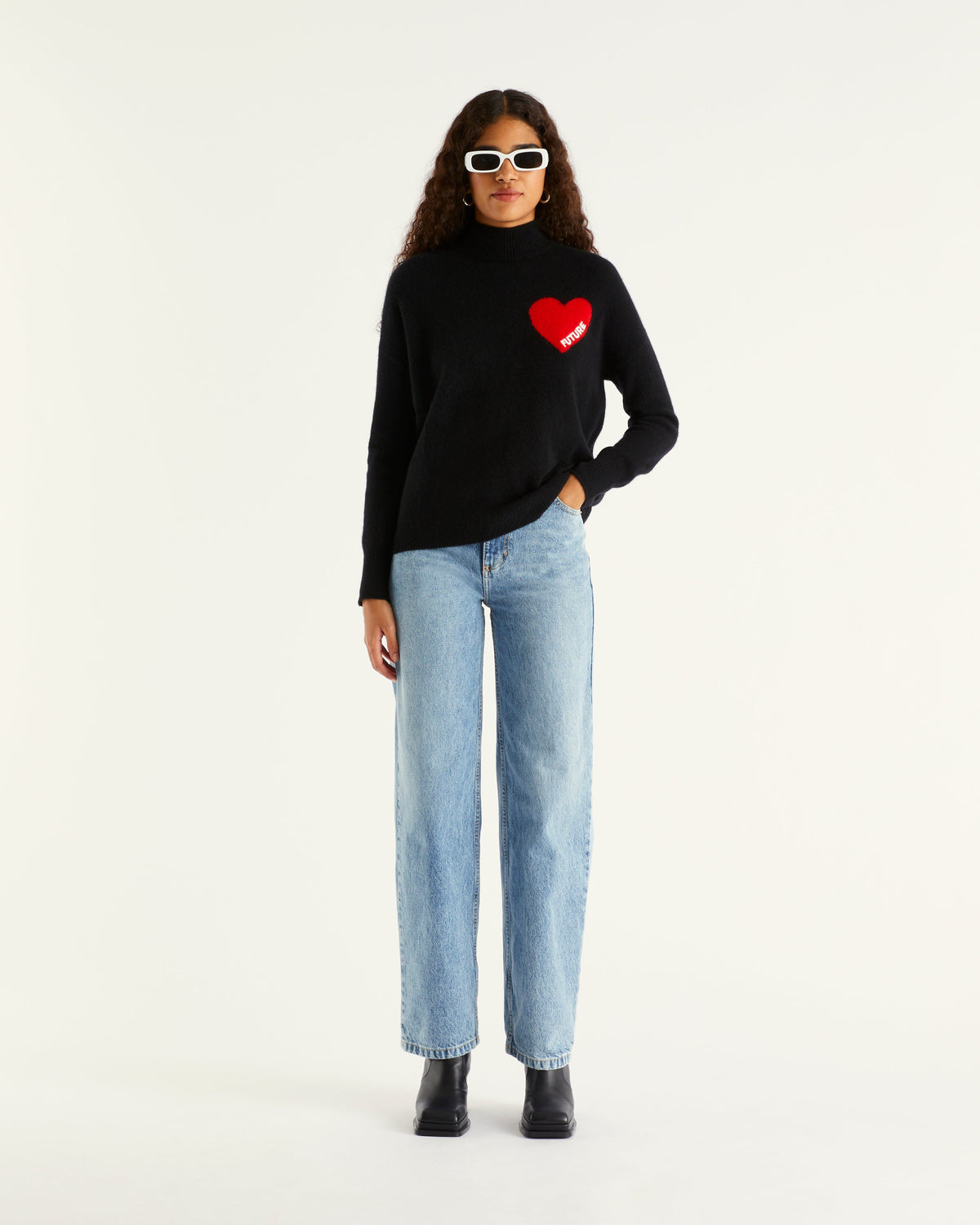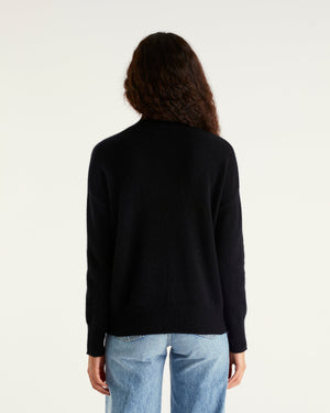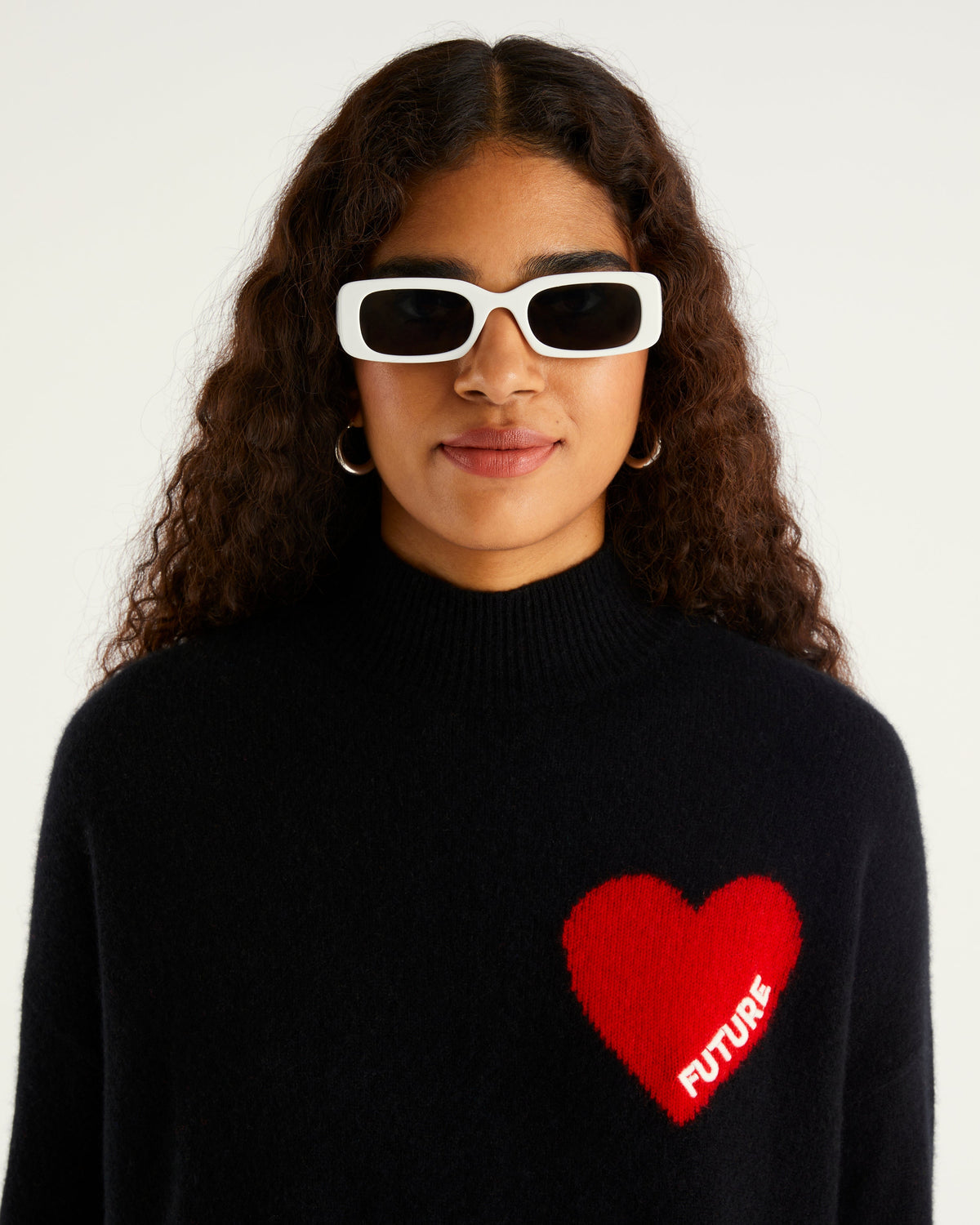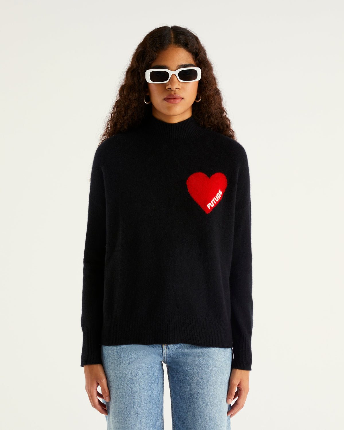 Sweater Col Montant Oversize Future Cœur 2 Fils - 100% Cachemire - Noir