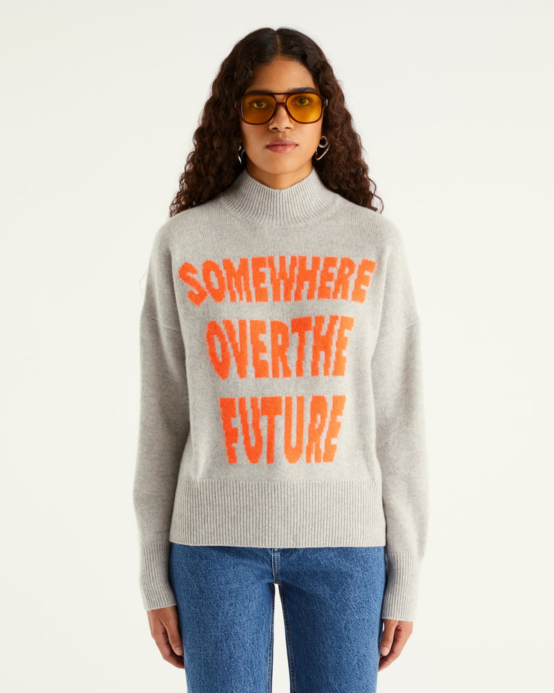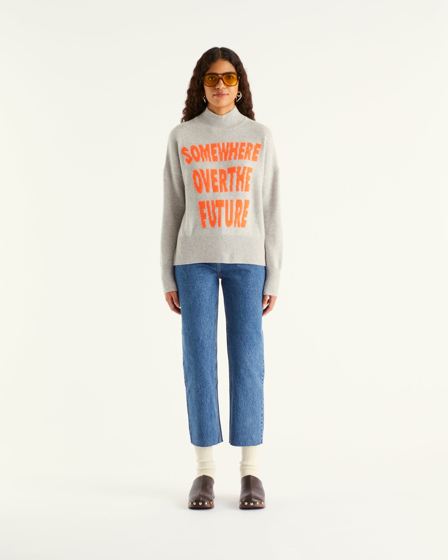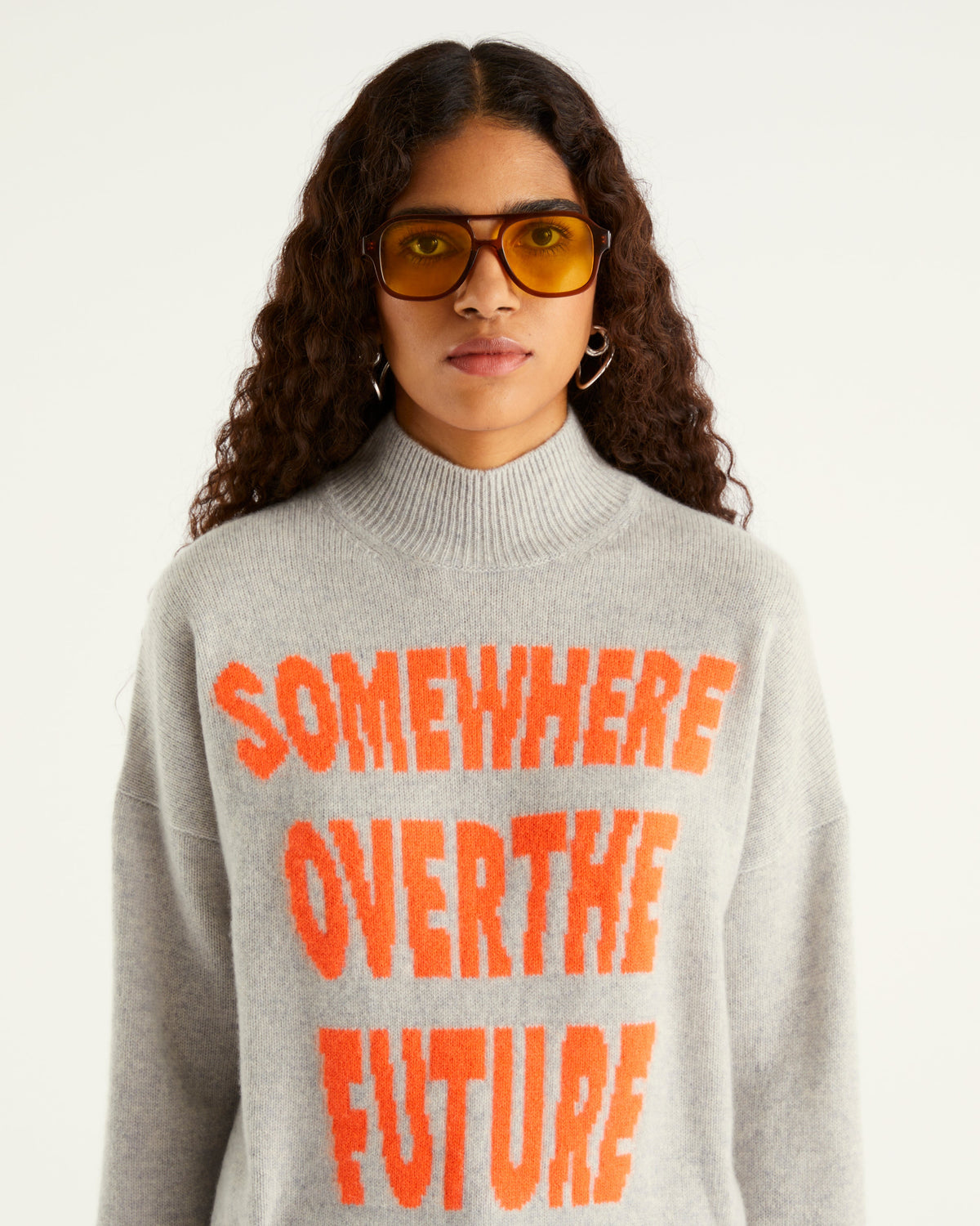 Sweater Col Montant Somewhere Over The Future 4 Fils - 100% Cachemire - Gris Chiné Clair