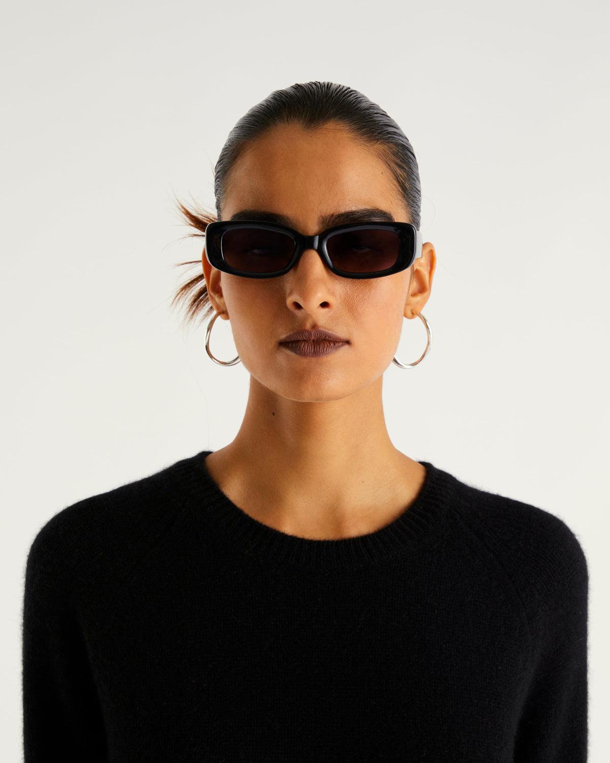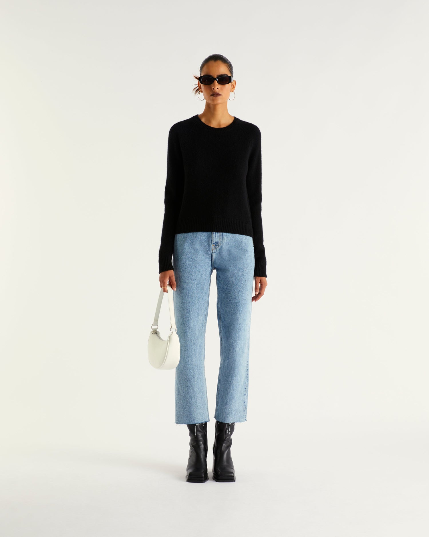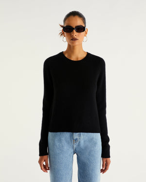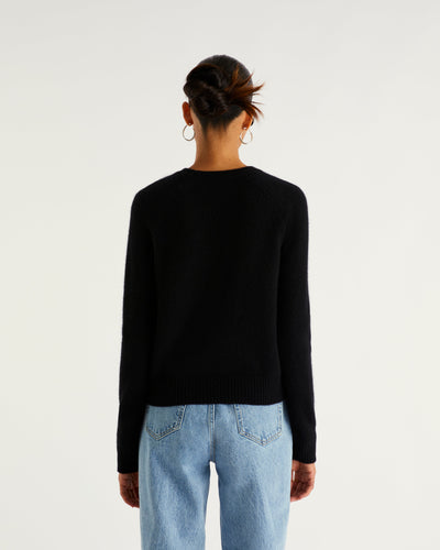 Sweater Col Rond Court 6 Fils - 100% Cachemire - Noir