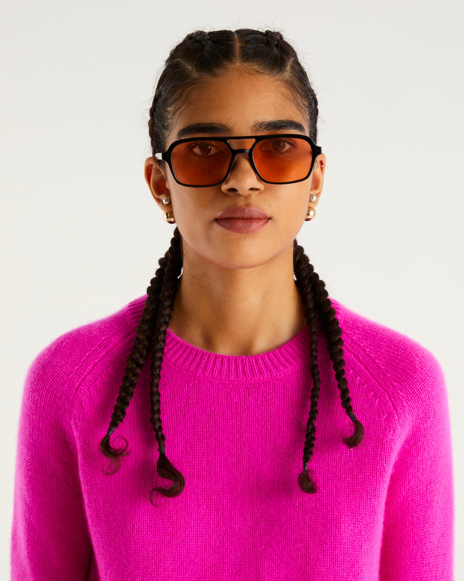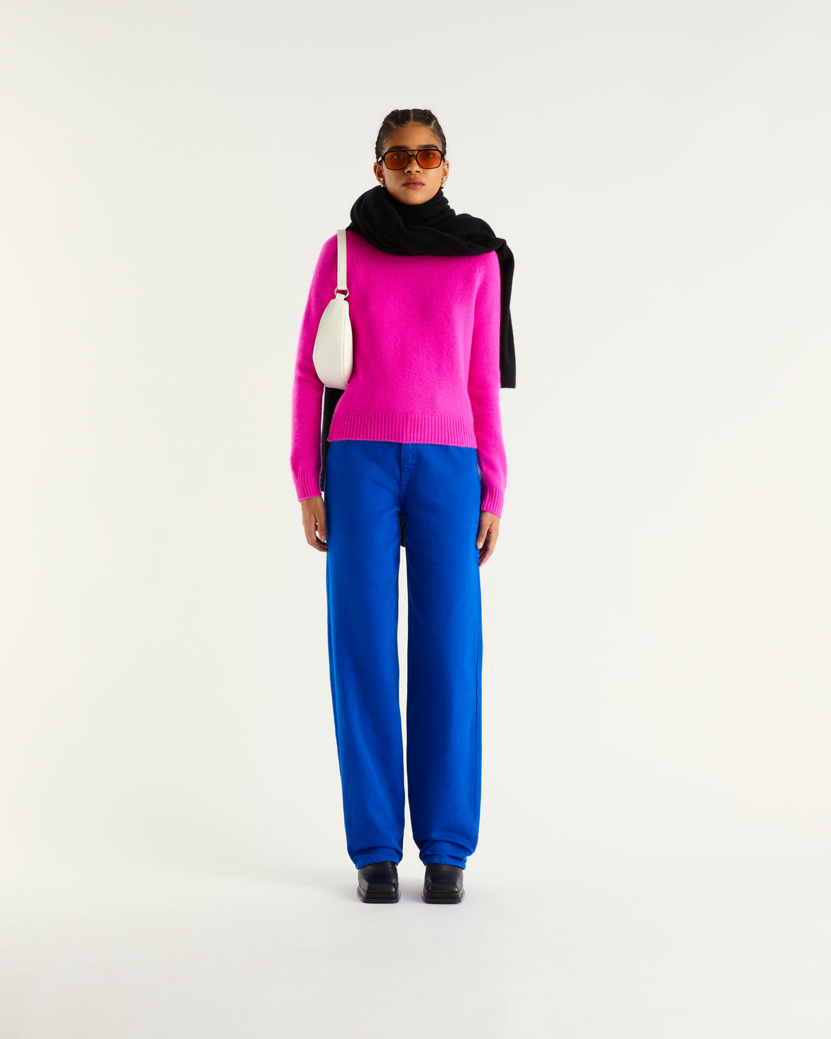 Sweater Col Rond Court 6 Fils - 100% Cachemire - Power Pink