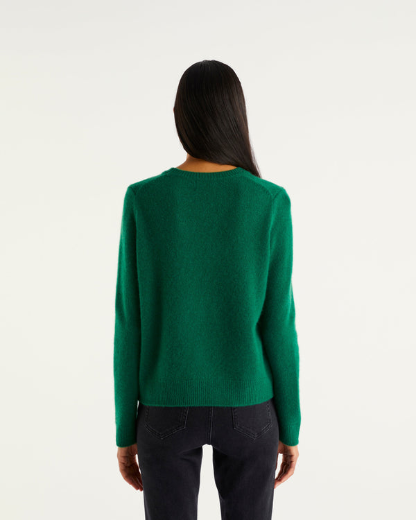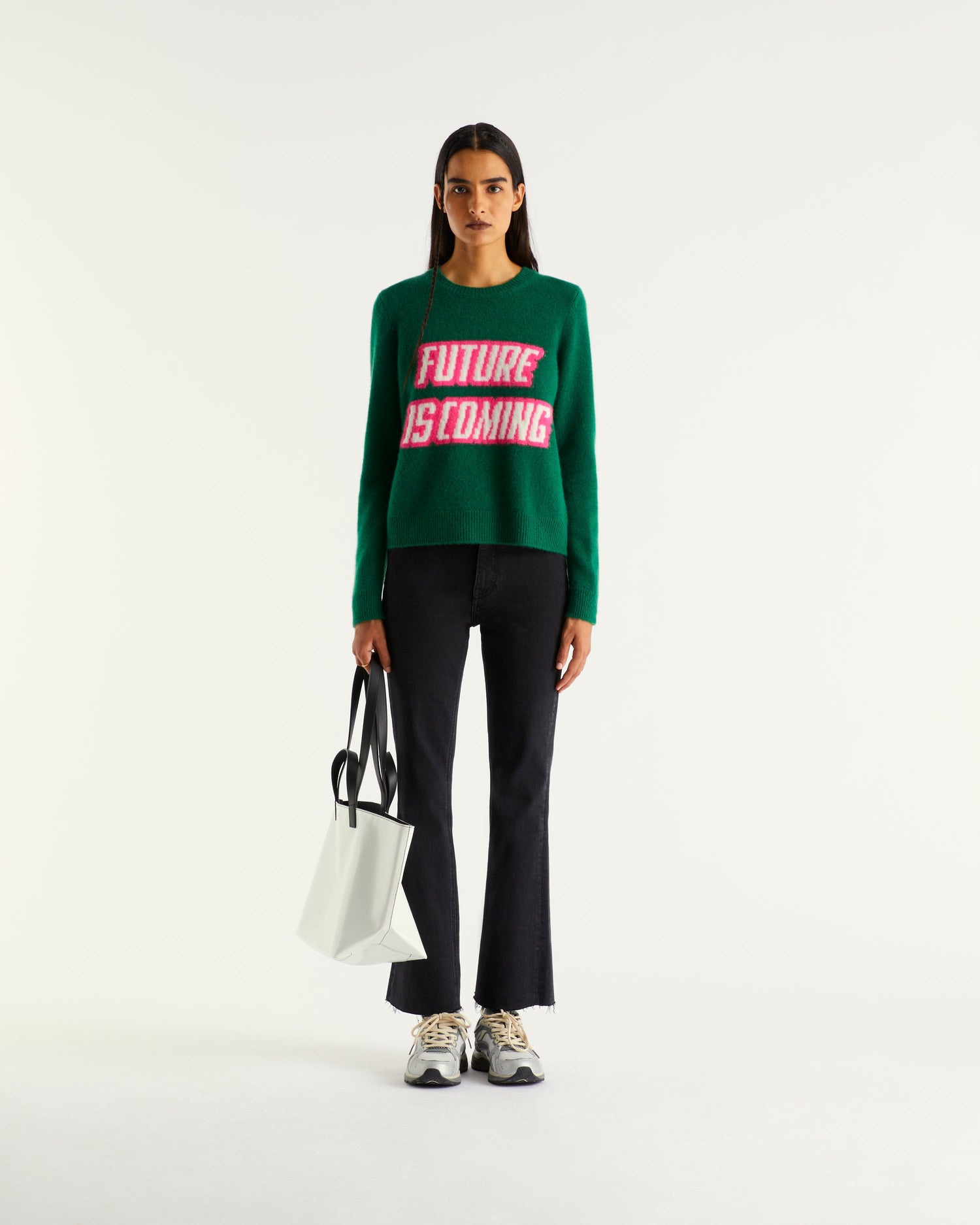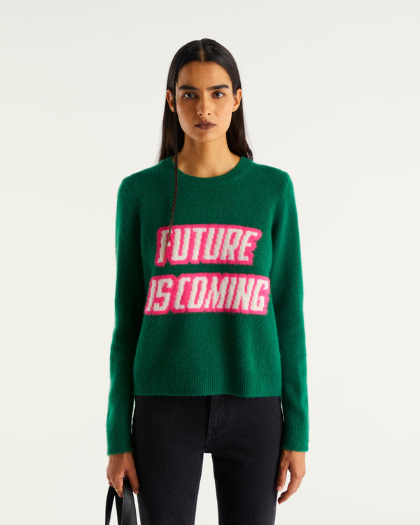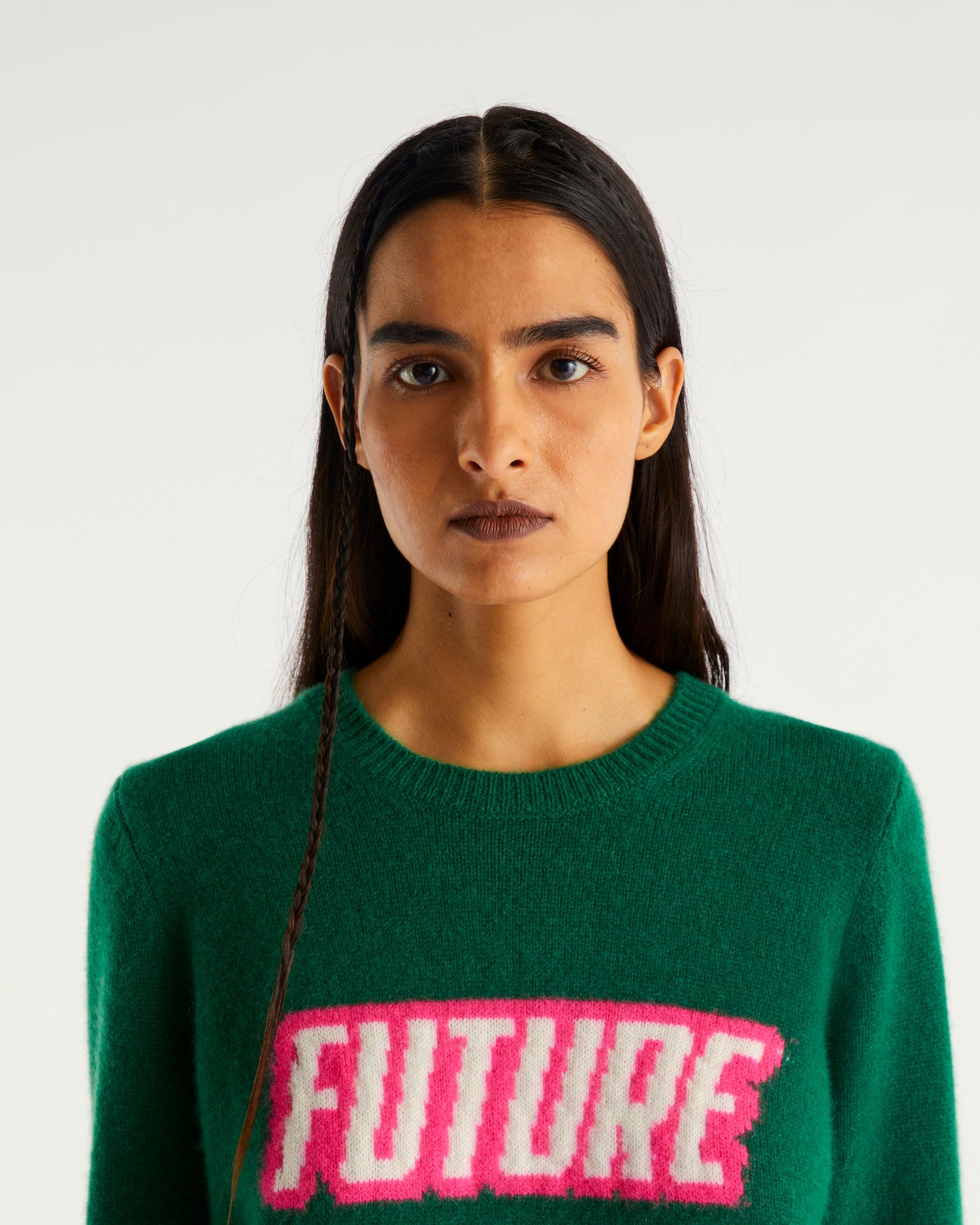Sweater Col Rond Court Future Is Coming 4 Fils - 100% Cachemire - Vert Sapin