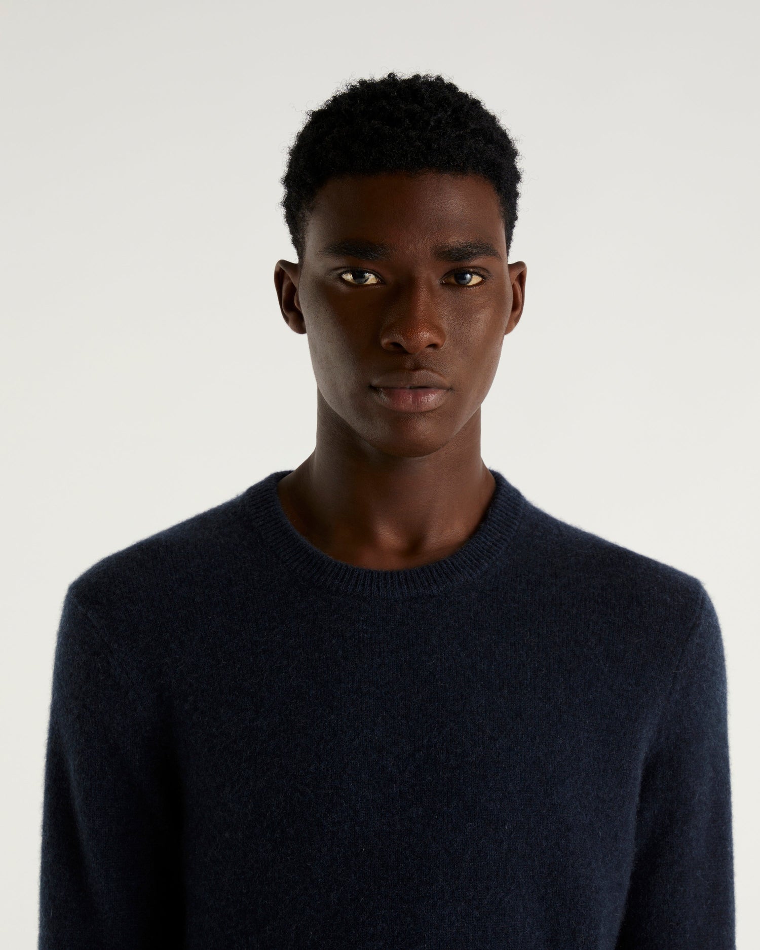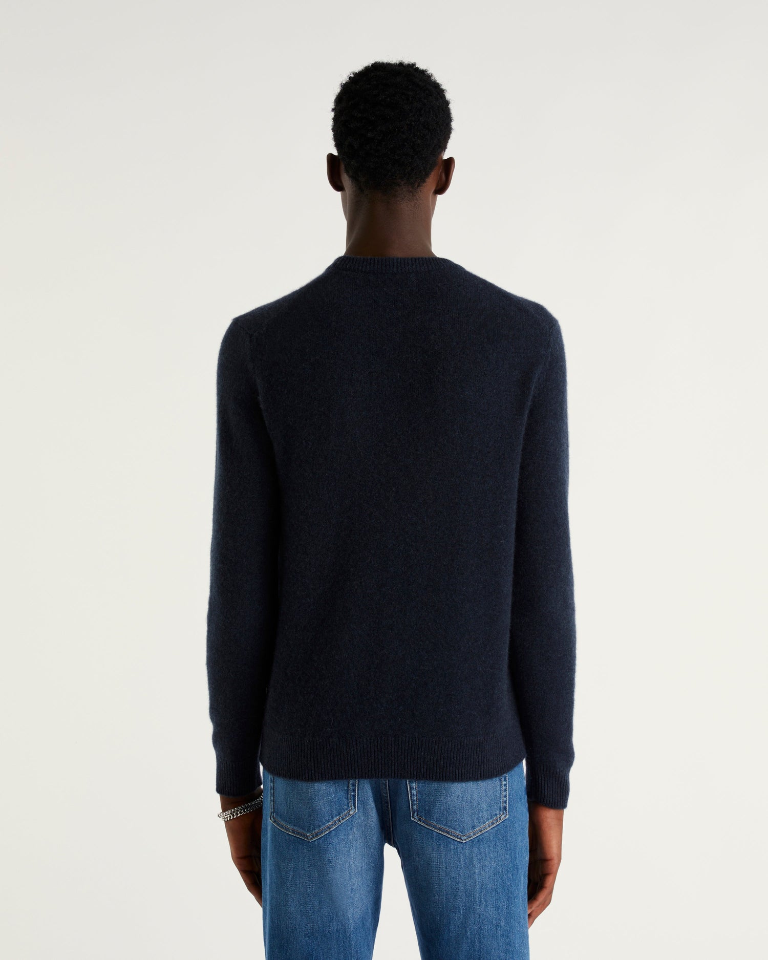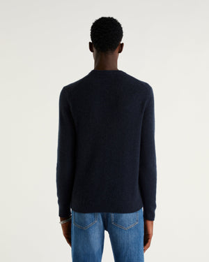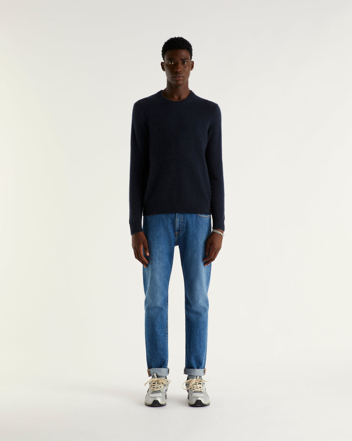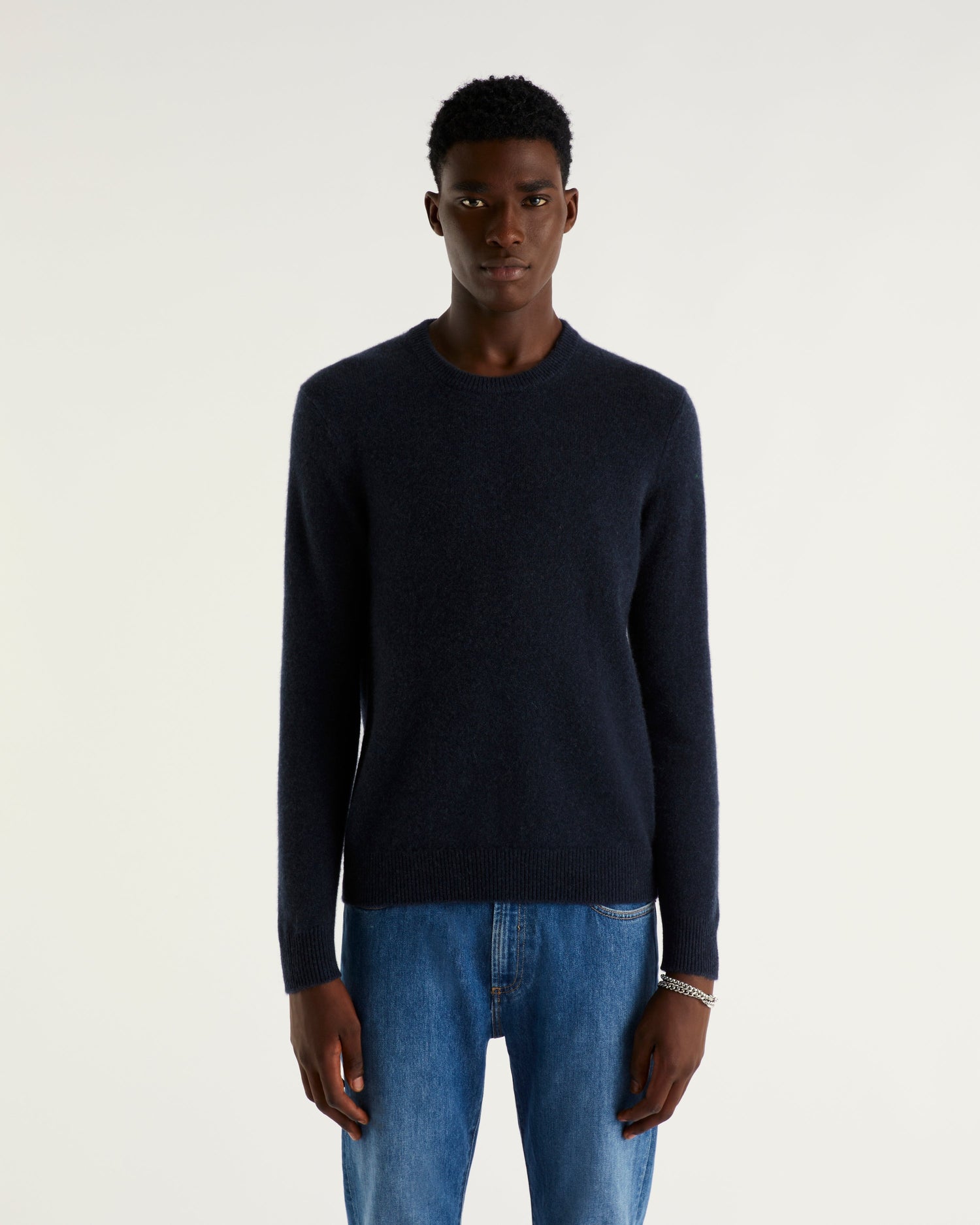Sweater Col Rond 4 Fils - 100% Cachemire - Bleu Chiné
