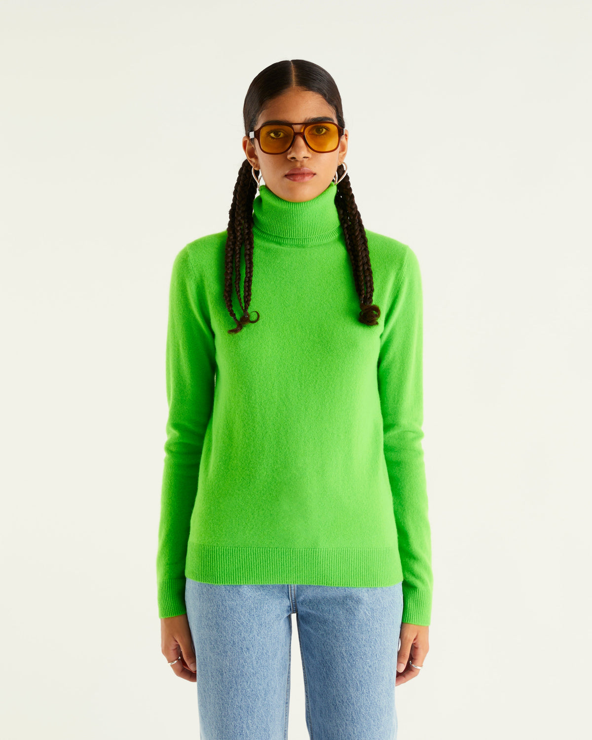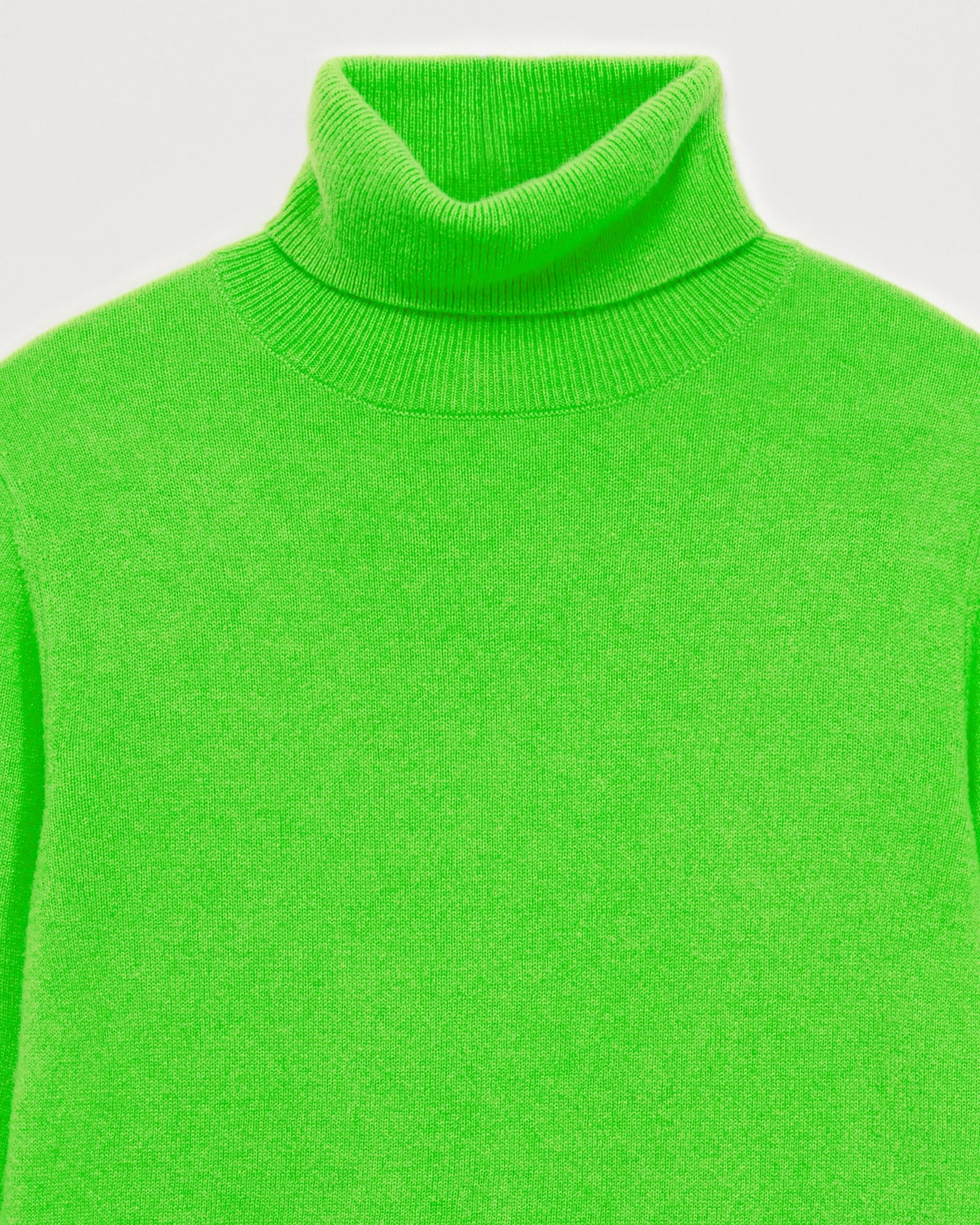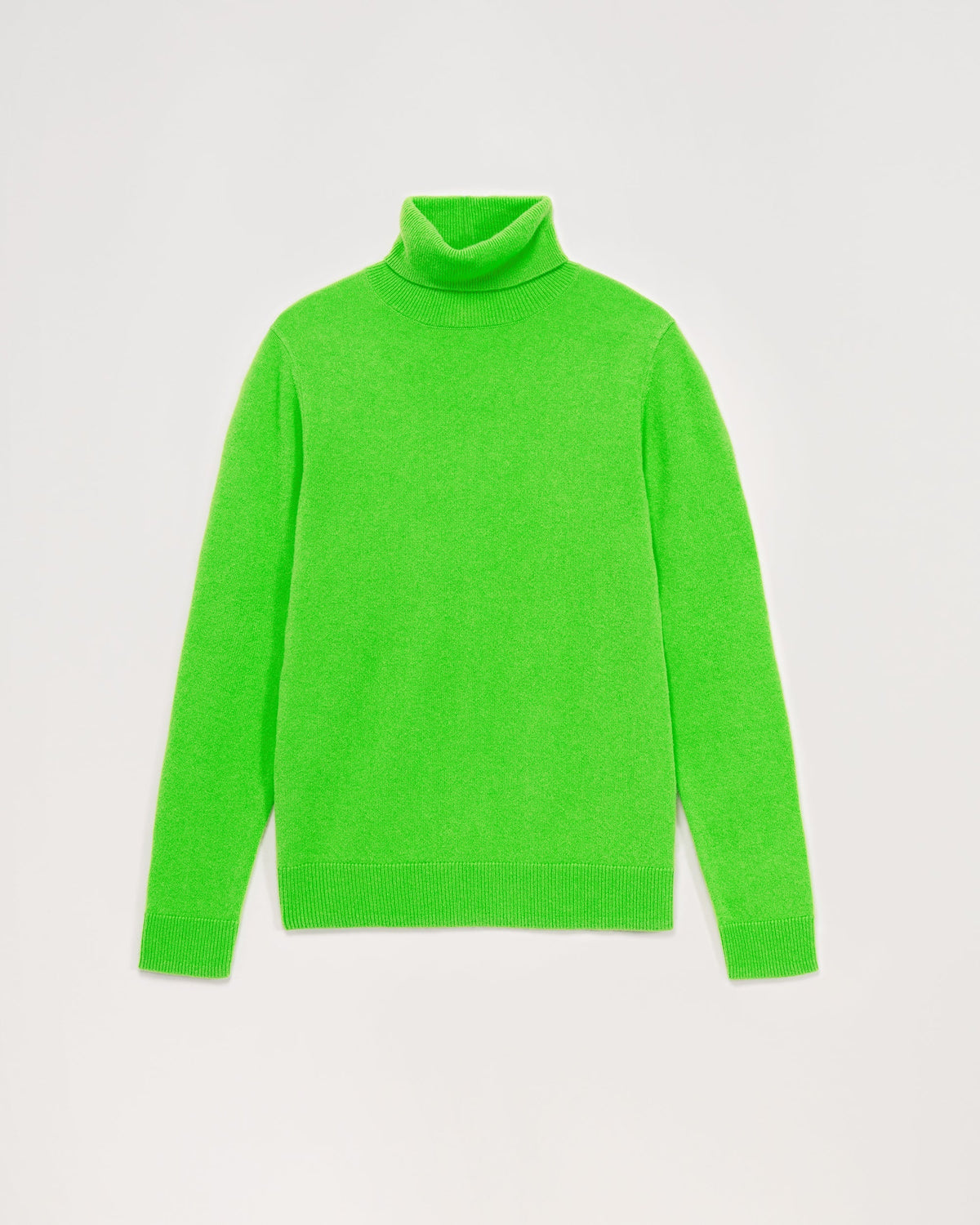 Sweater Col Roulé 2 Fils - 100% Cachemire - Electric Green