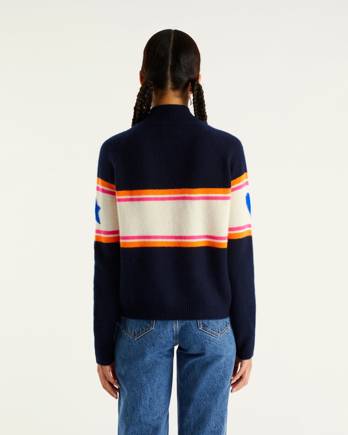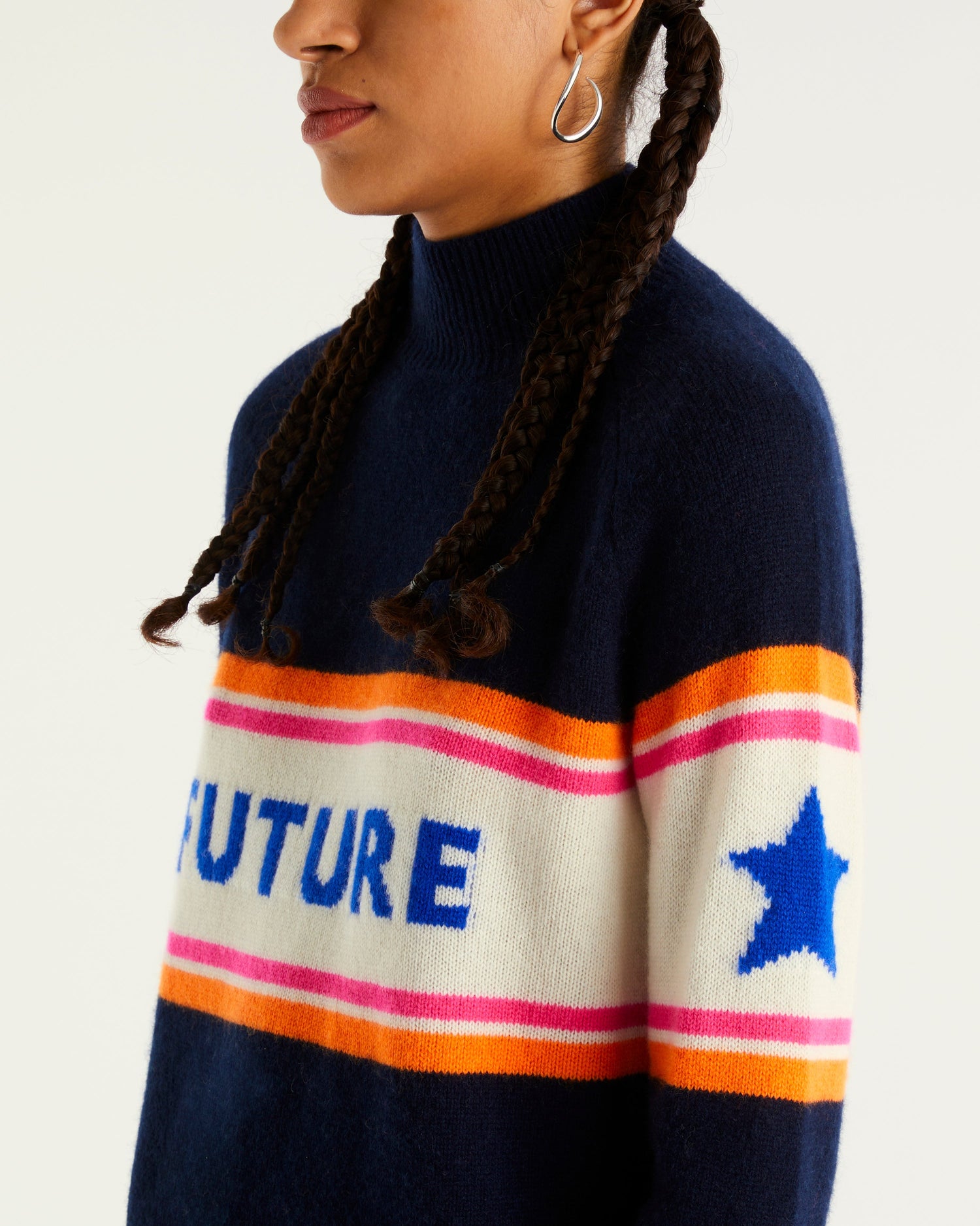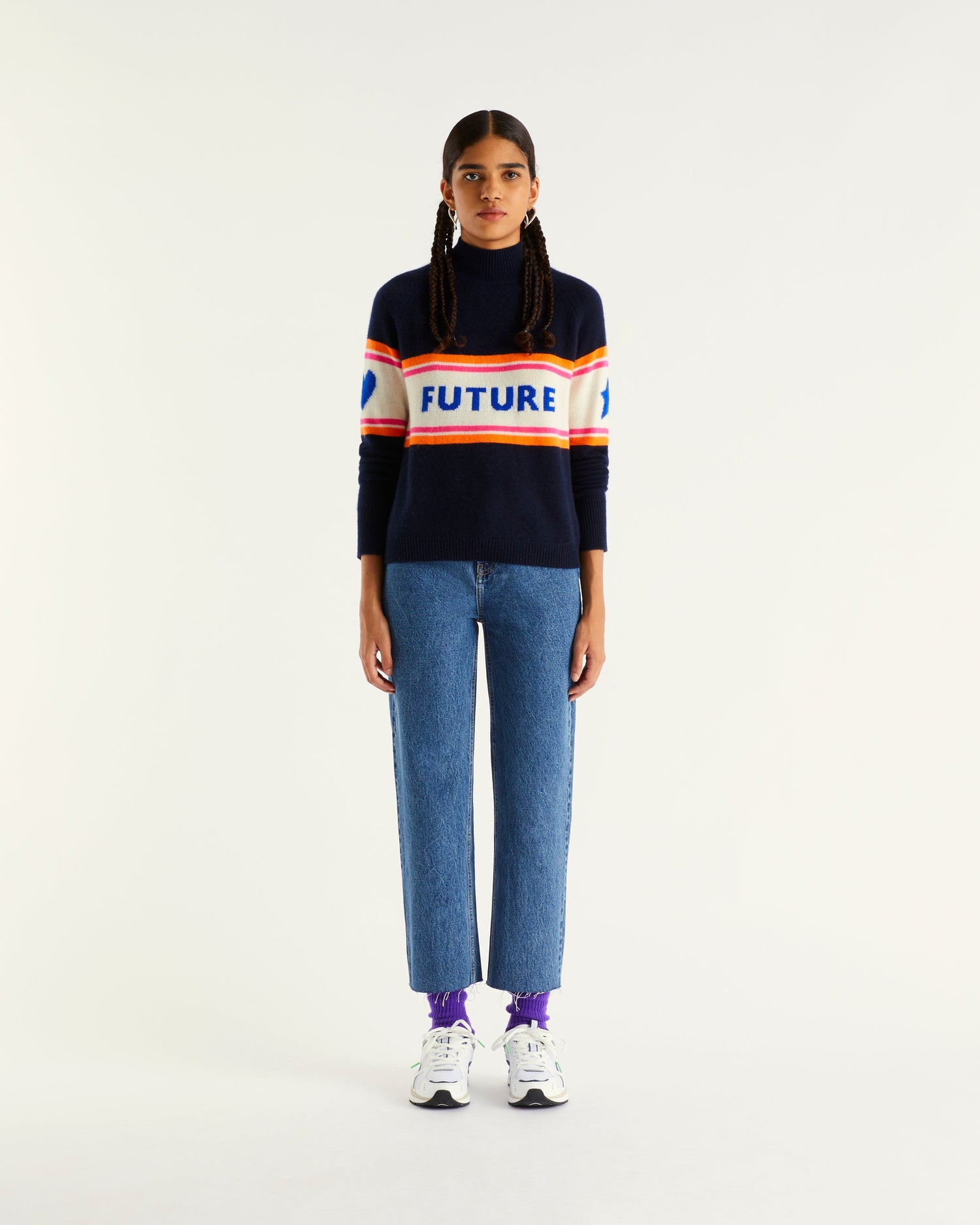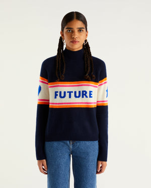 Sweater Col Montant Future Cœur Étoile 4 Fils - 100% Cachemire - Navy
