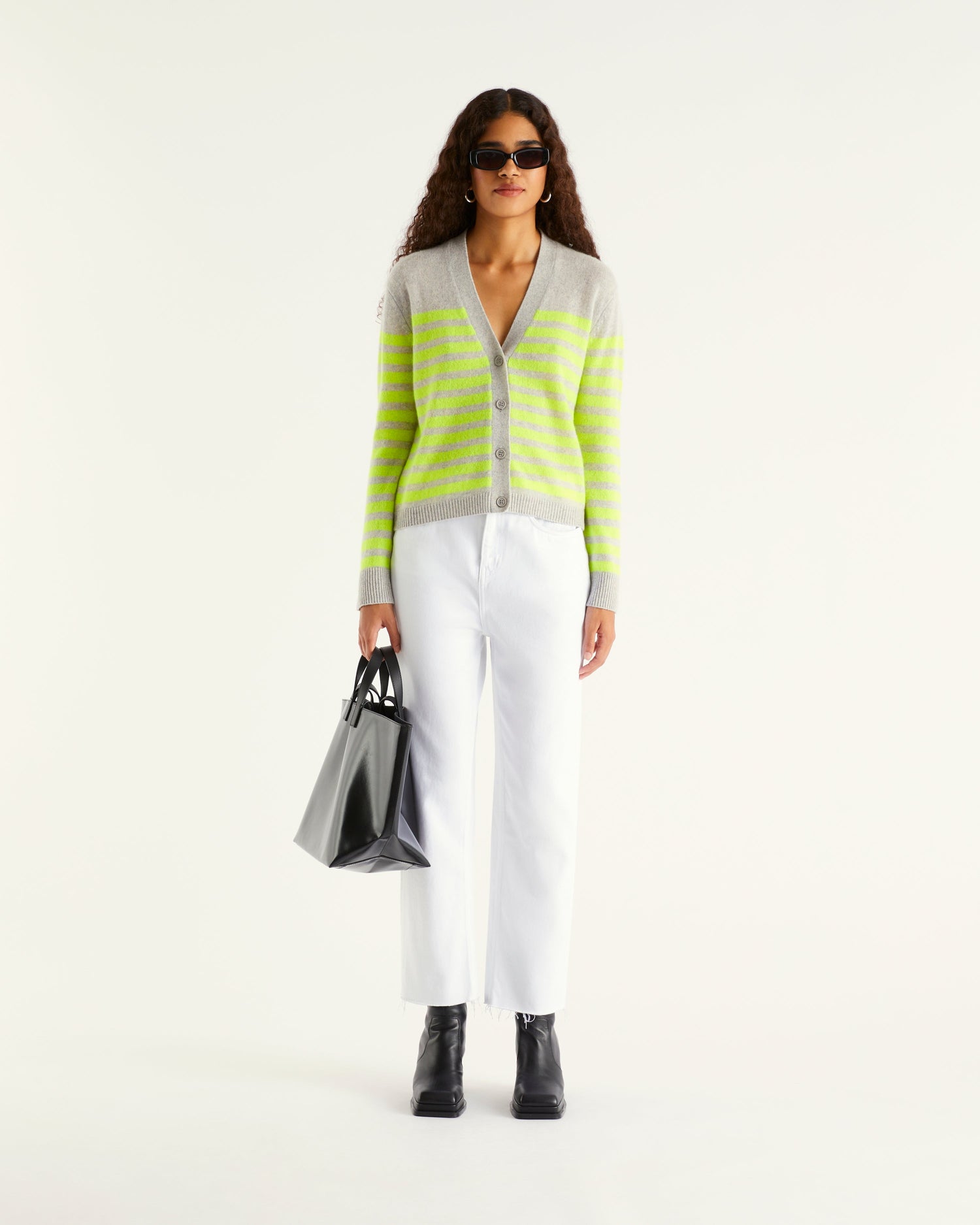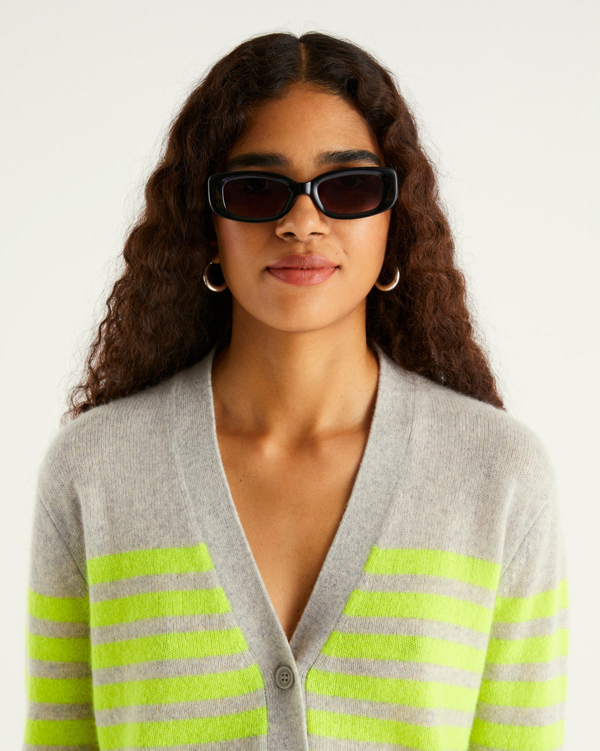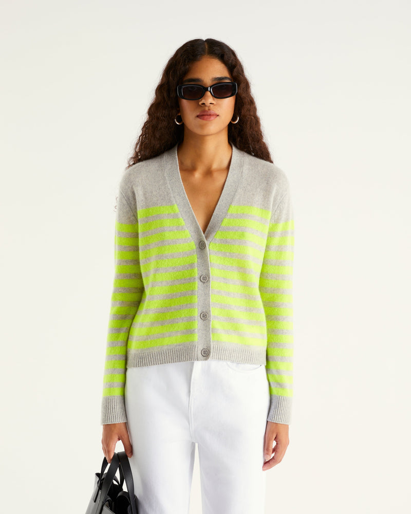Cardigan Court Rayures 2 Fils - 100% Cachemire - Gris Chiné Clair