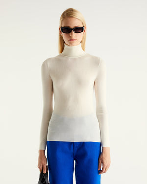 Sweater Col Roulé à Côtes Ice Wool - 100% Laine Mérinos - Écru