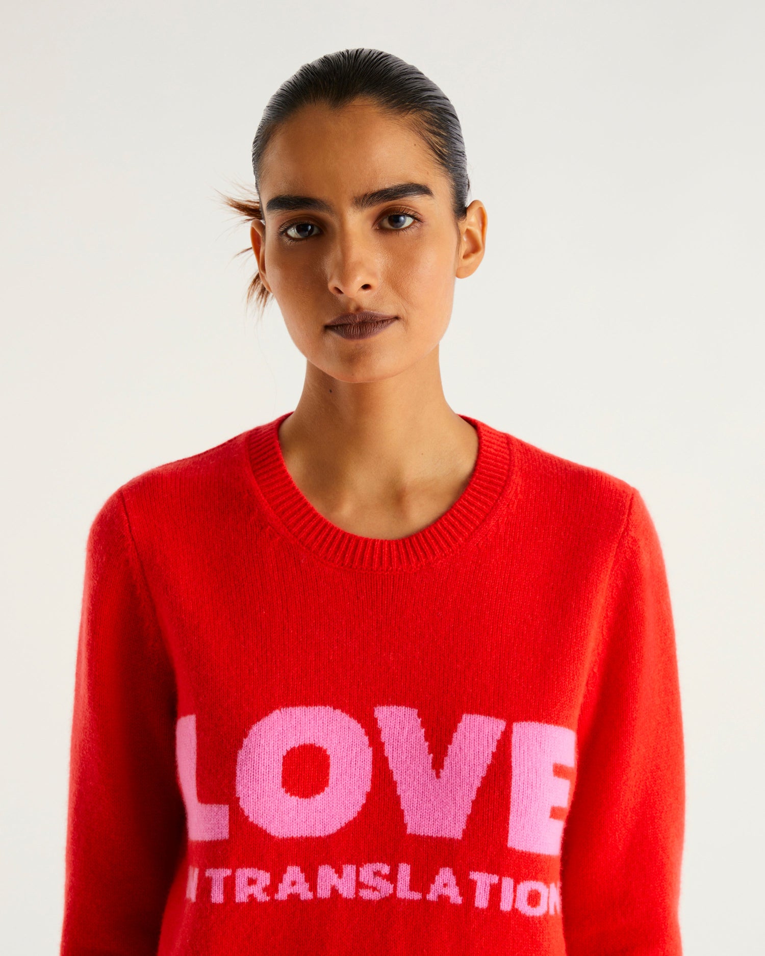 Sweater Col Rond Love In Translation 2 Fils - 100% Cachemire - Rouge Vif