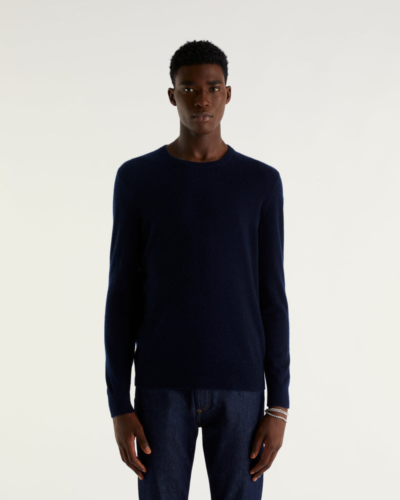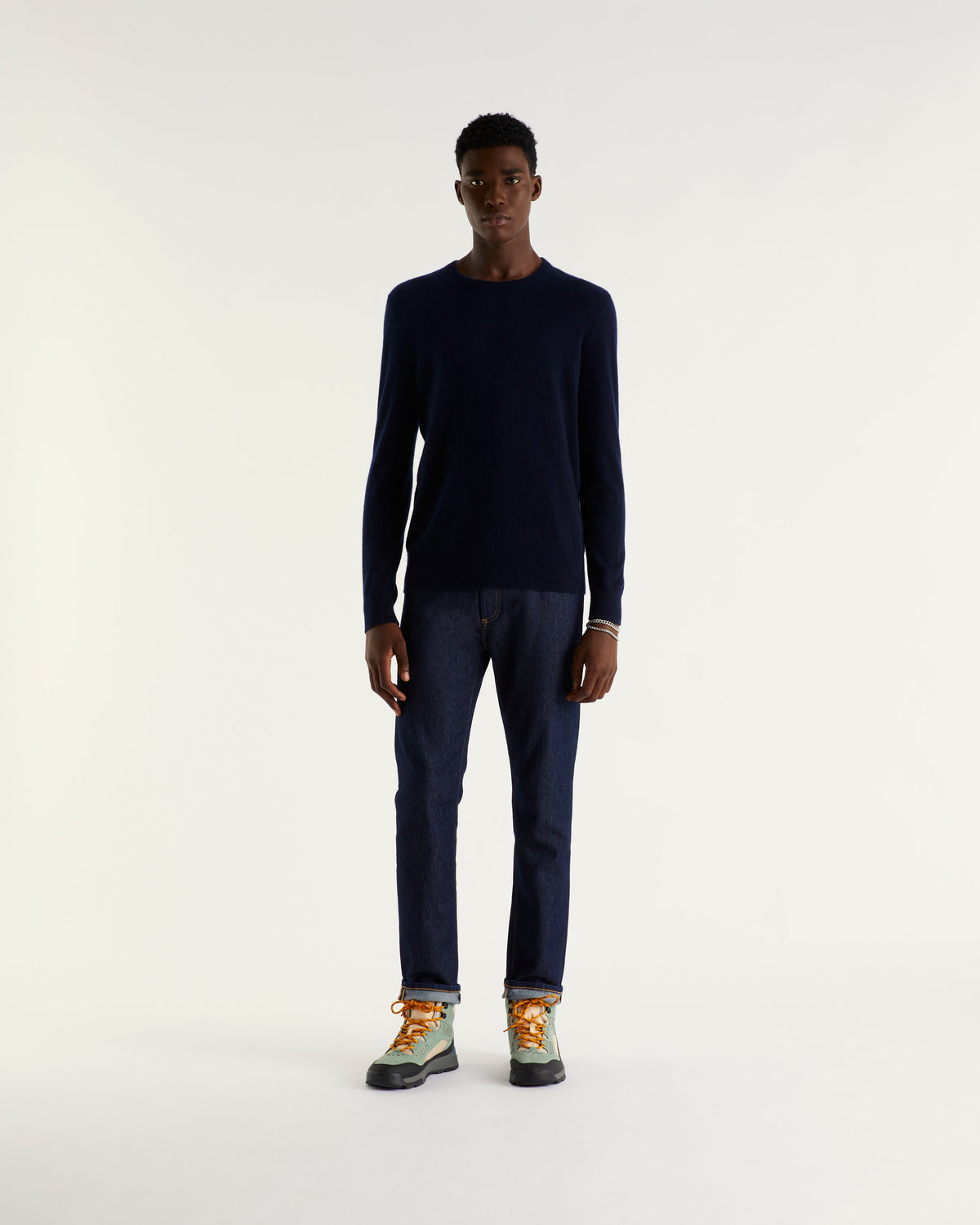 Sweater Col Rond 2 Fils - 100% Cachemire - Navy