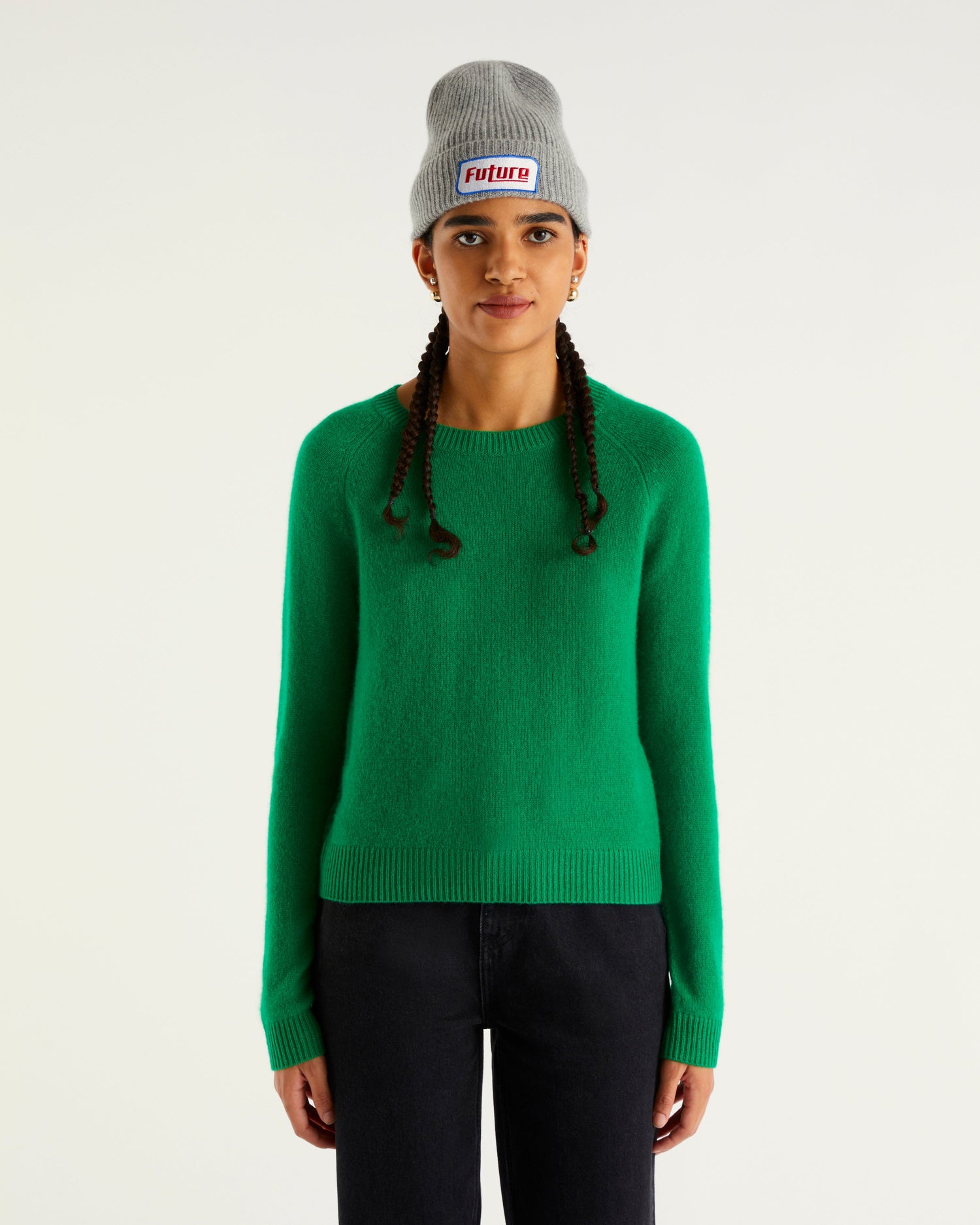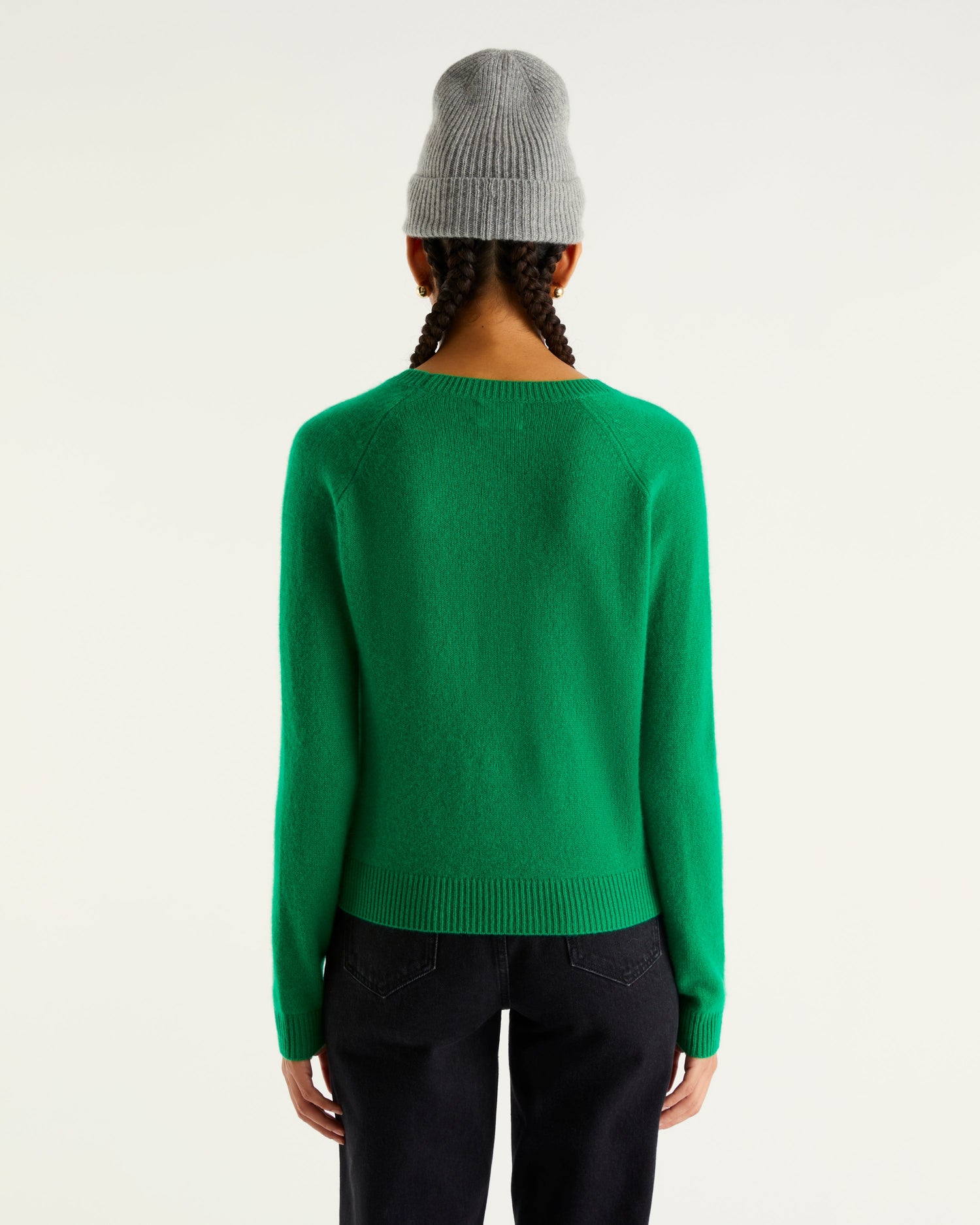 Sweater Col Rond Court Light - 100% Cachemire - Vert Gazon