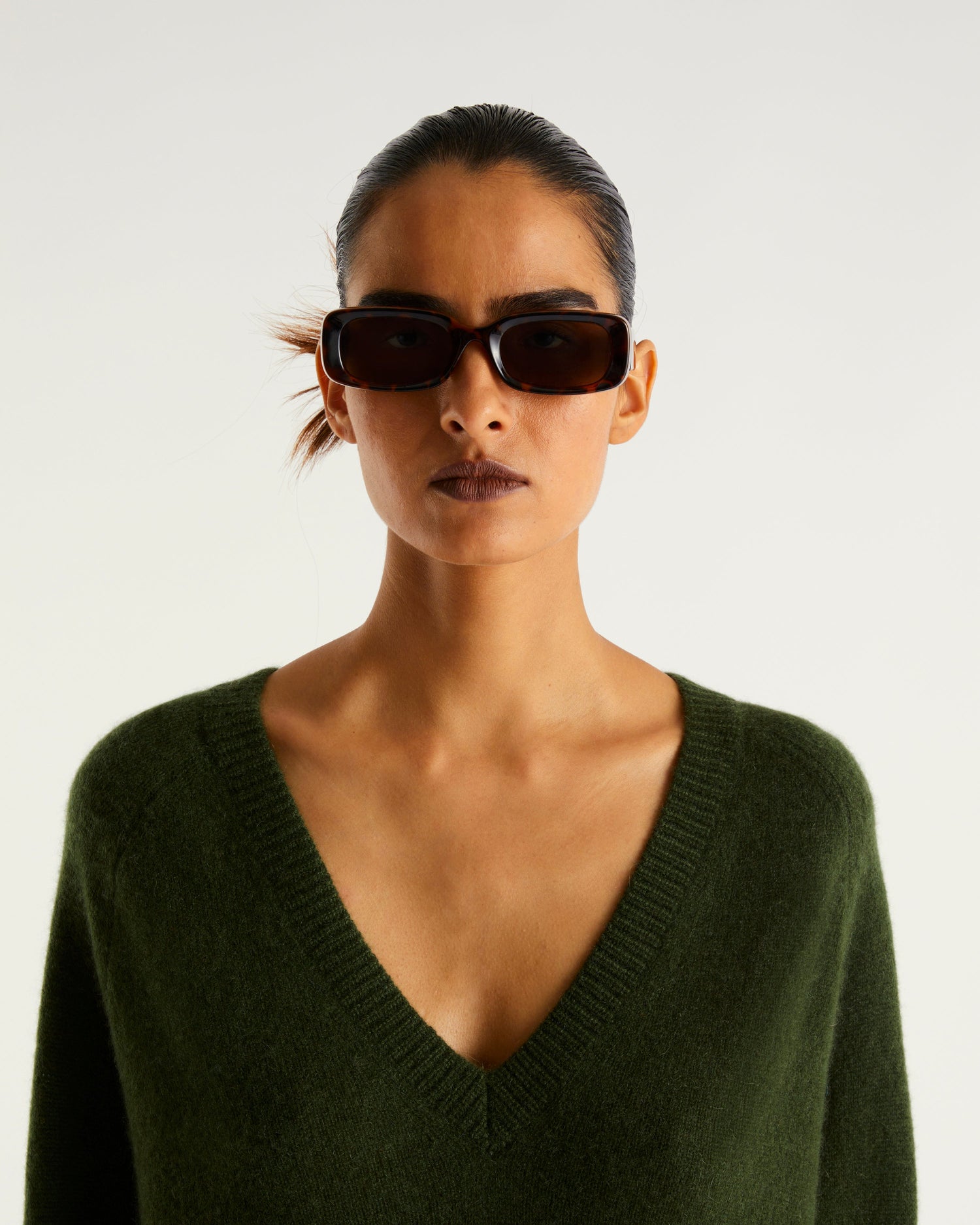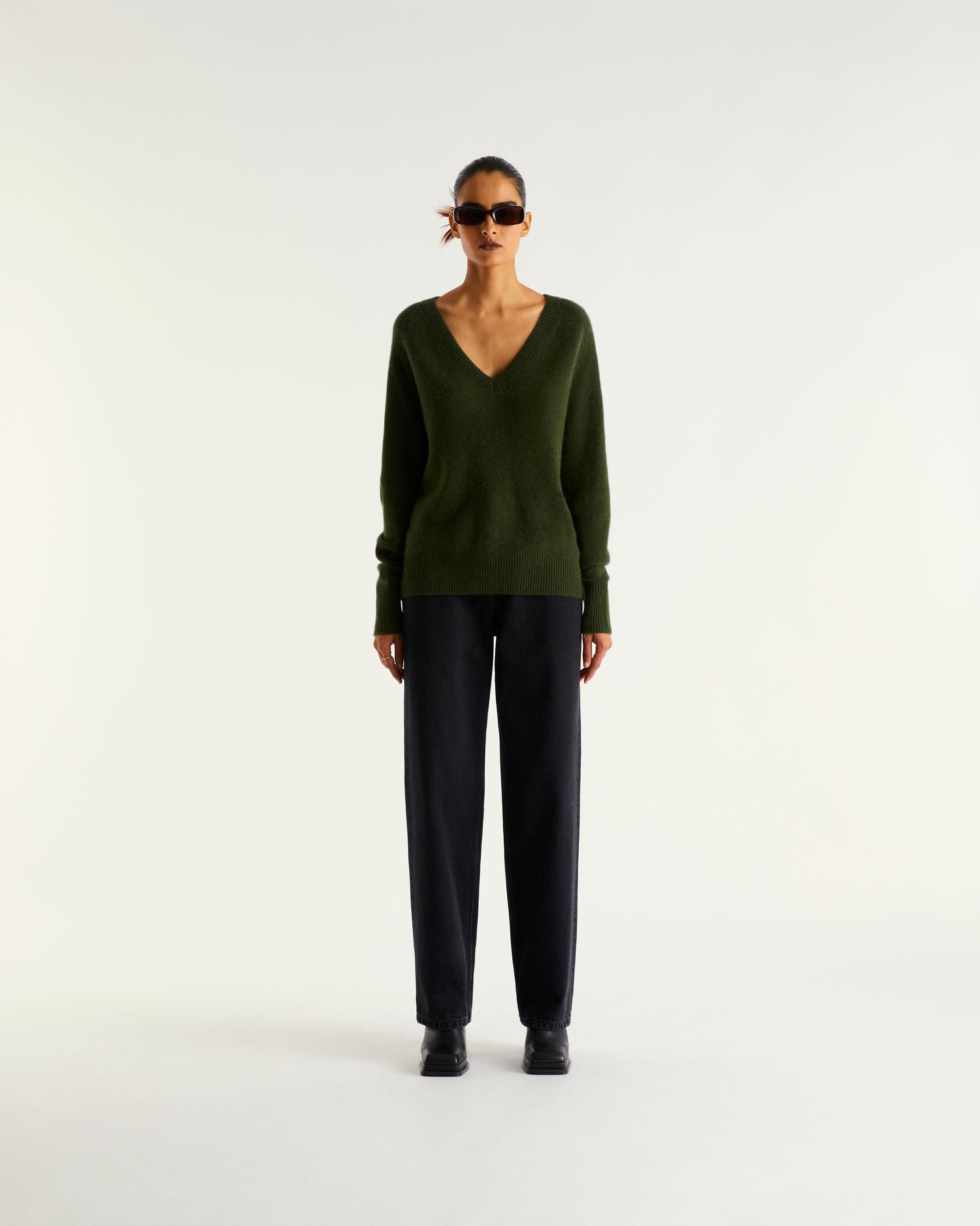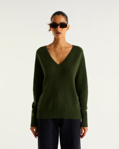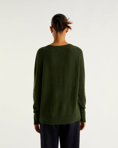 Sweater Col V Oversize Light - 100% Cachemire - Kaki