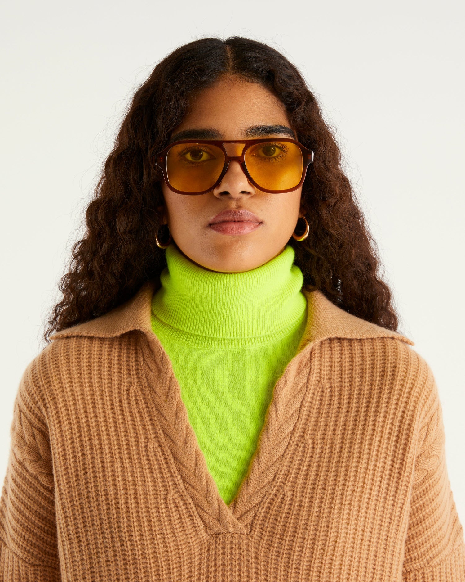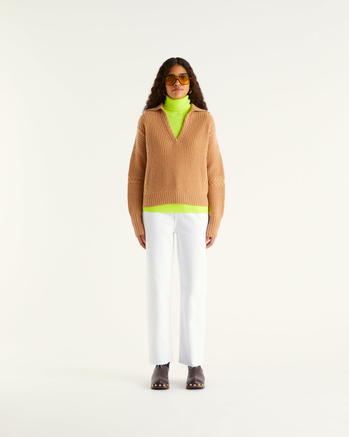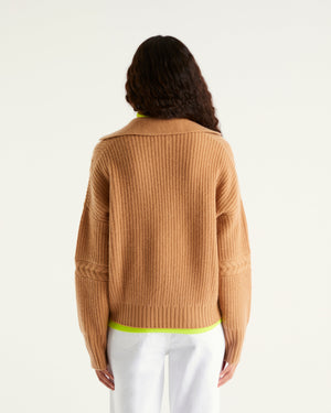 Sweater Col Polo Court À Torsades 6 Fils - 100% Cachemire - Camel