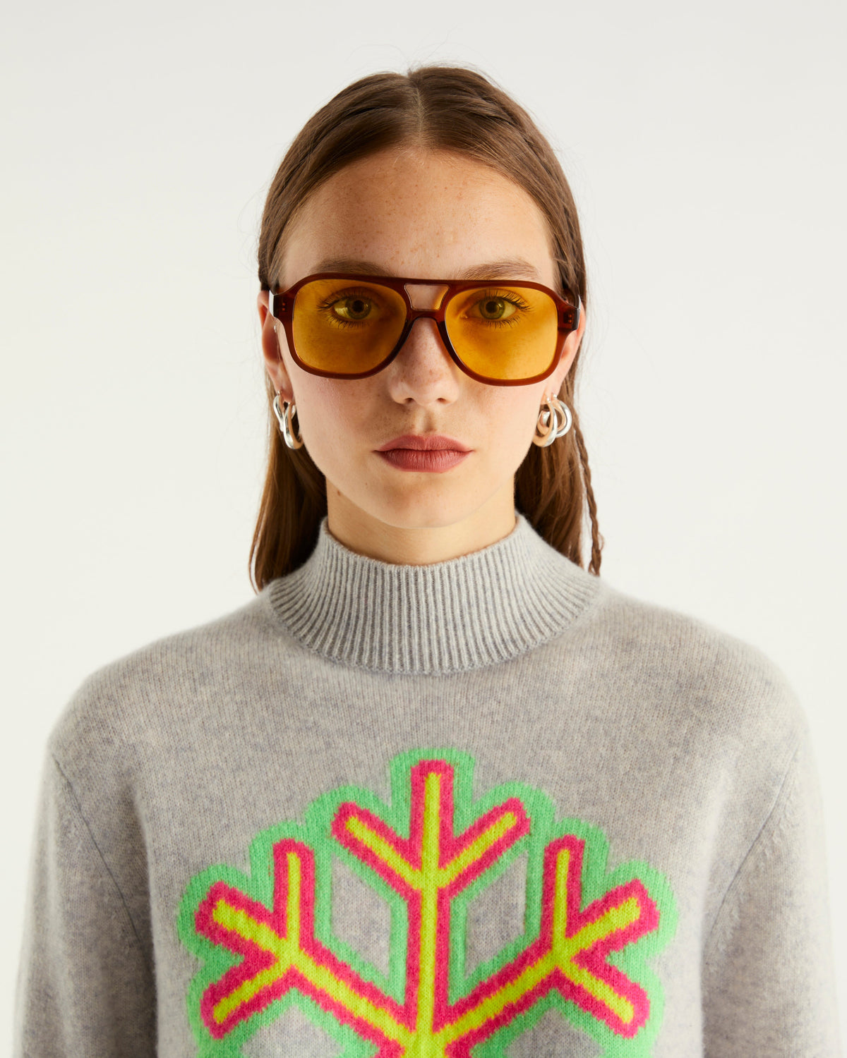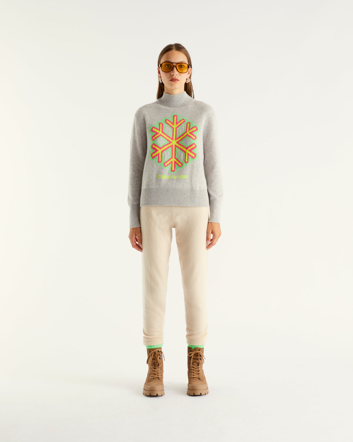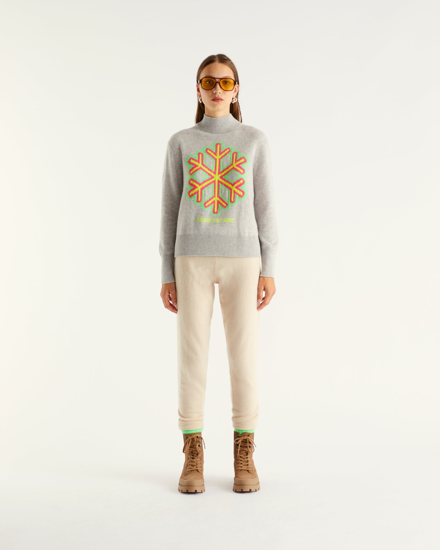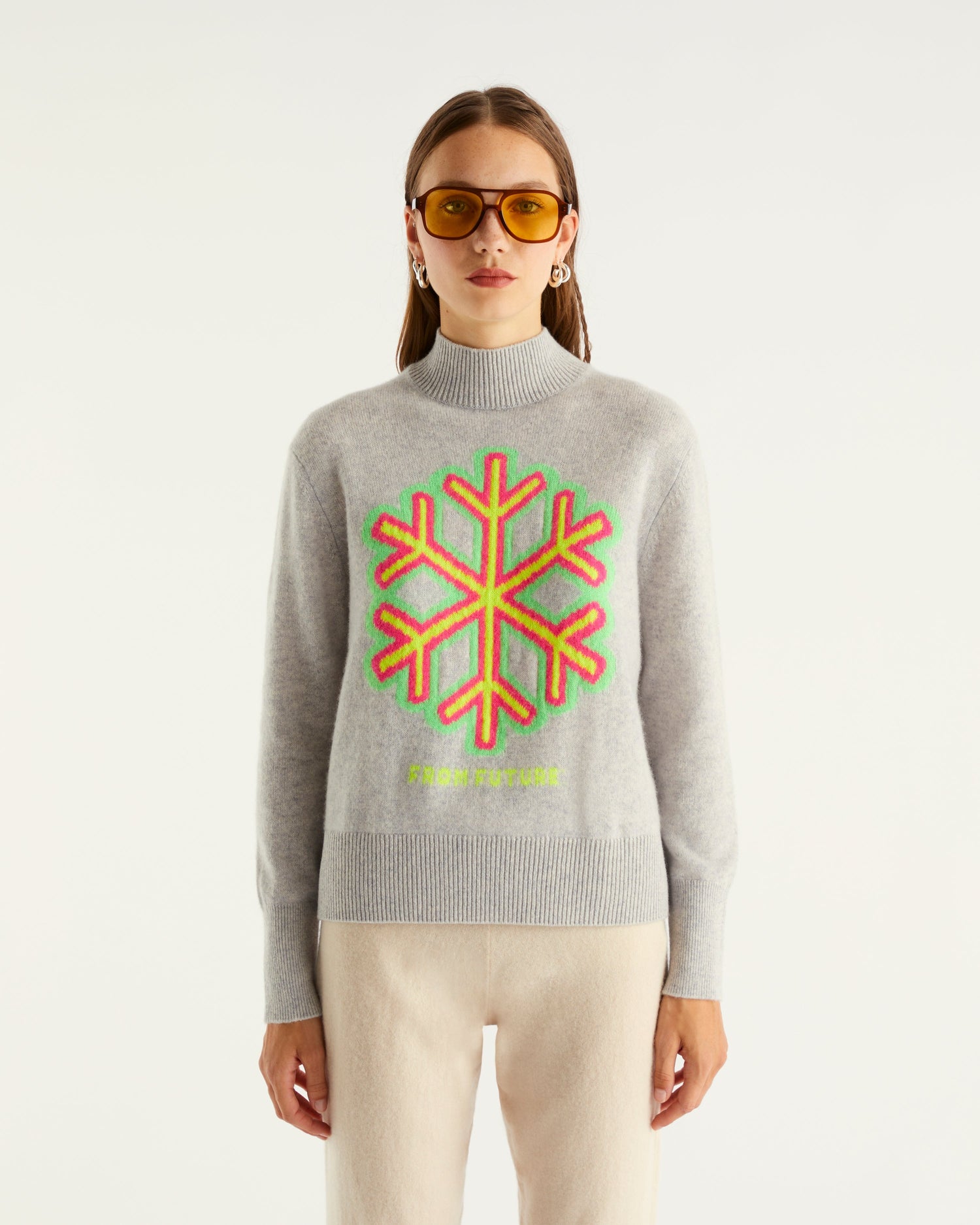 Sweater Col Montant Court From Future Flocon 2 Fils - 100% Cachemire - Gris Chiné Clair