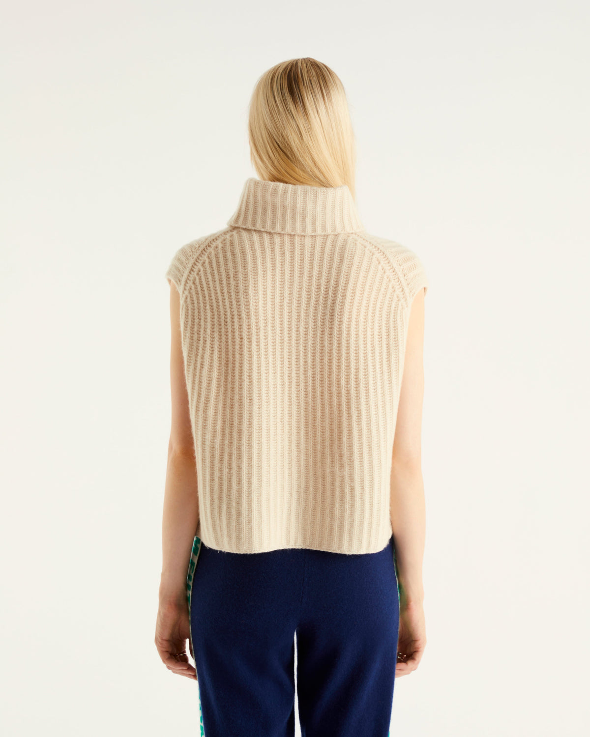 Col Roulé Court Maille Perlée Sans Manche 10 Fils